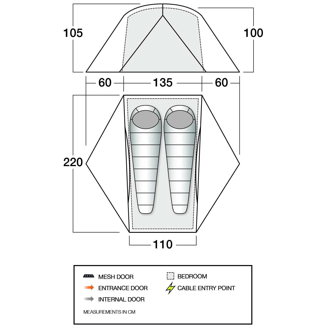 Altre caratteristiche sono le cuciture completamente nastrate, le tasche integrate in rete, le corde di tensione Mini Line-Lok con cursore in plastica e gli elementi riflettenti sui punti di ancoraggio. La tenda comprende anche una pratica copertura con cinghie di compressione e un ampio foro d'ingresso per facilitare l'imballaggio. La tenda è stata testata secondo lo standard europeo EN5912.
