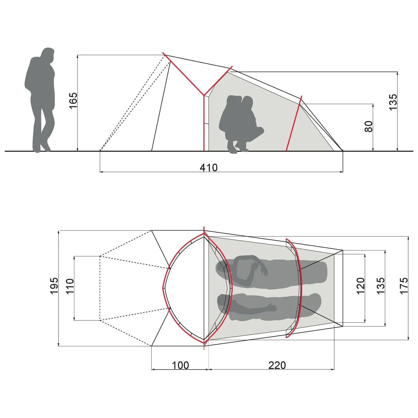 La tenda a tunnel è costruita con i pali che non si incrocciano. Consente un uso efficiente dello spazio interno e, se ben ancorata, offre un'elevata resistenza al vento.