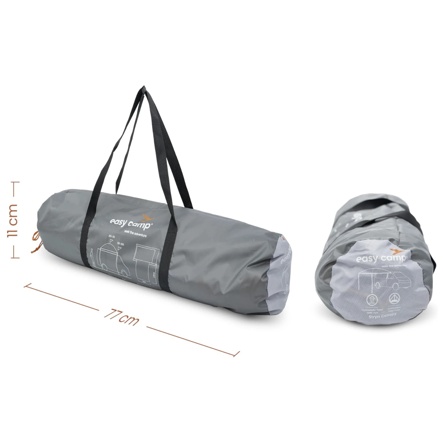 Il baldacchino Stryn di Easy Camp è una soluzione universale per ampliare rapidamente lo spazio di camper, furgoni e roulotte. In pochi istanti, crea un piacevole ambiente per rilassarsi, cucinare o sedersi all'ombra, offrendo al contempo protezione dalla pioggia leggera. È perfetto per il campeggio, il campeggio selvaggio e la spiaggia.
