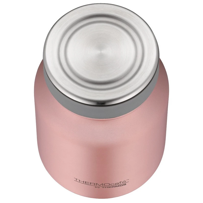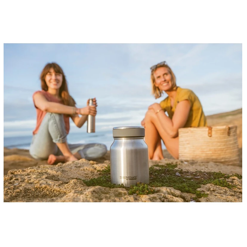 Thermos Thermocafé è un thermos per alimenti in acciaio inossidabile con isolamento sottovuoto da 500 ml, progettato per trasportare e conservare comodamente cibi caldi e freddi. È ideale per zuppe, pasti pronti, porridge o, al contrario, per cibi freddi come insalate o frutta, sia per il lavoro, la scuola o i viaggi.