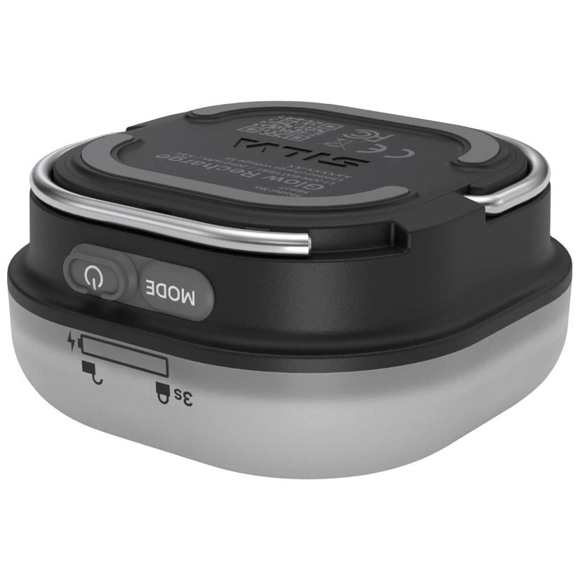 La lampada compatta Silva Glow Recharge renderà più piacevoli le tue serate in campeggio, in montagna in tenda, ma sarà utile anche per feste in giardino o durante un'interruzione di corrente. Grazie alle clip in acciaio inossidabile, può essere appesa, posizionata su un tavolo e regolata secondo necessità.