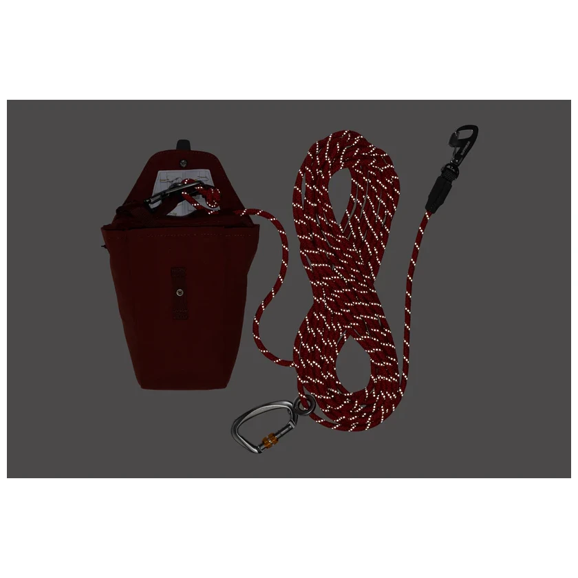 Il sistema è ispirato alle tecniche di arrampicata. La base è costituita da una robusta corda elastica con anima e sistema di tensionamento, che si tende tra due punti fissi, ad esempio alberi. Il sistema può essere fissato anche a un solo punto. Successivamente, aggancerai il guinzaglio al sistema, permettendo al cane di muoversi. Il moschettone girevole impedisce al guinzaglio di attorcigliarsi e aggrovigliarsi. Il sistema è dotato di una sacca portaoggetti, in cui potrai riporre l'intera corda.