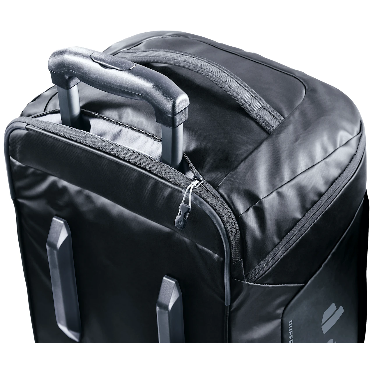 La valigia da viaggio Duffel Pro Movo 60 del produttore Deuter è adatta ai viaggiatori attivi che viaggiano in ambienti diversi. Combina una valigia classica con ruote e manico telescopico e uno zaino con spallacci di alta qualità e ben imbottiti che possono essere riposti in un attimo. È inoltre dotato di robuste maniglie per un facile trasporto.