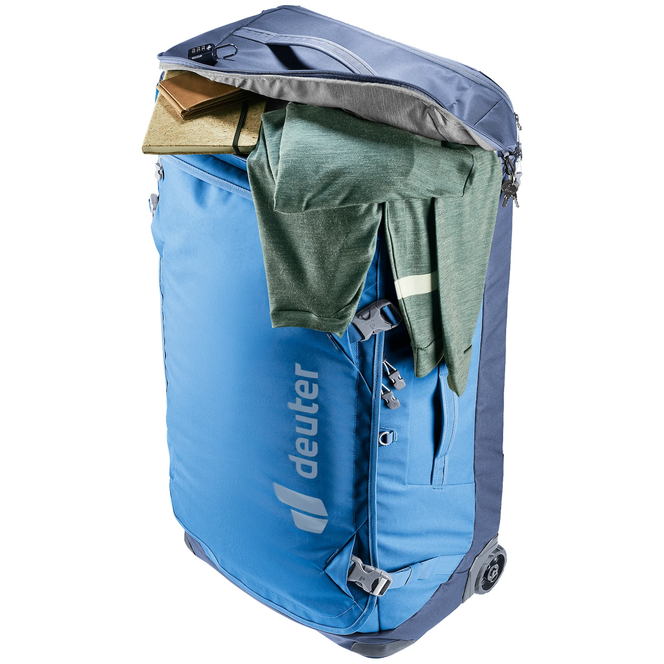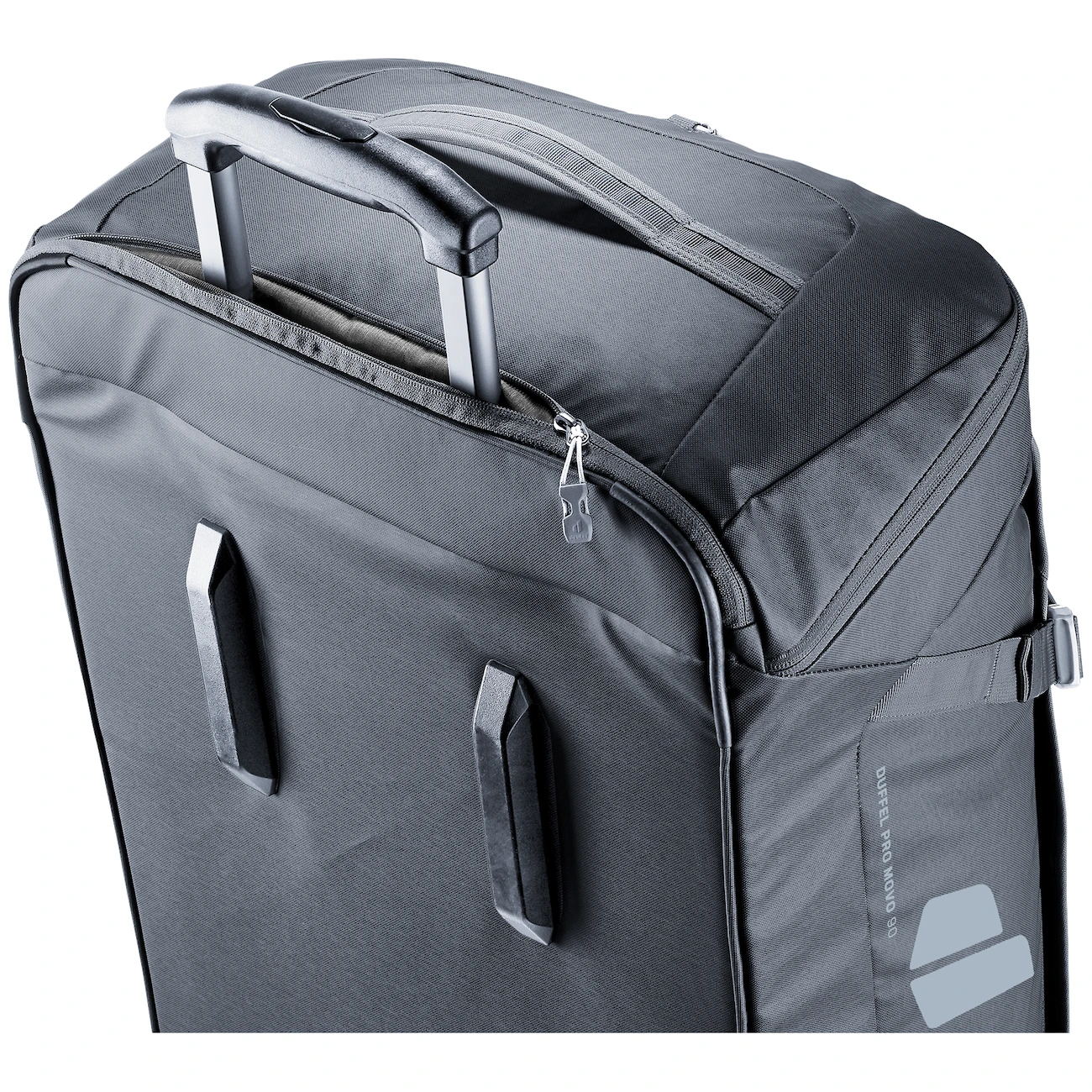 La valigia da viaggio Duffel Pro Movo 90 del produttore Deuter è adatta ai viaggiatori attivi che viaggiano in ambienti diversi. Combina una valigia classica con ruote e manico telescopico e uno zaino con spallacci di alta qualità e ben imbottiti che possono essere riposti in un attimo. È inoltre dotato di robuste maniglie per un facile trasporto.