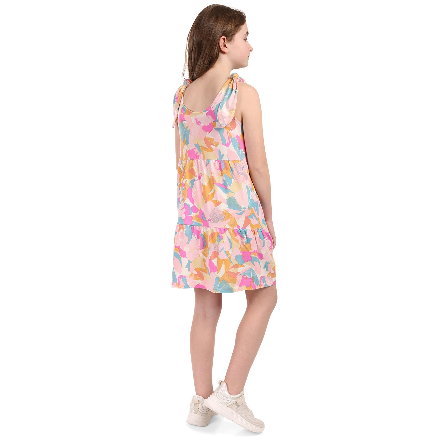 Abito estivo per bambina Areno è un'ottima scelta per ogni piccola signorina che vuole apparire elegante e sentirsi completamente a suo agio nei mesi caldi. Sono realizzati in materiale leggero, elastico e altamente traspirante (95% poliestere, 5% elastan), grazie al quale offrono grande comfort durante tutto il giorno. L'abito ha un grazioso taglio semiaderente a forma di A e una lunghezza sopra il ginocchio, che insieme alla parte superiore con spalline garantisce la massima traspirabilità nelle calde giornate estive. L'amata stampa all-over attira l'attenzione a prima vista e il carattere giocoso è completato anche dall'originale patch sul davanti. Questo modello è assolutamente perfetto per l'uso quotidiano, gite in famiglia nella natura, gite in città e una rilassante vacanza estiva al mare.
