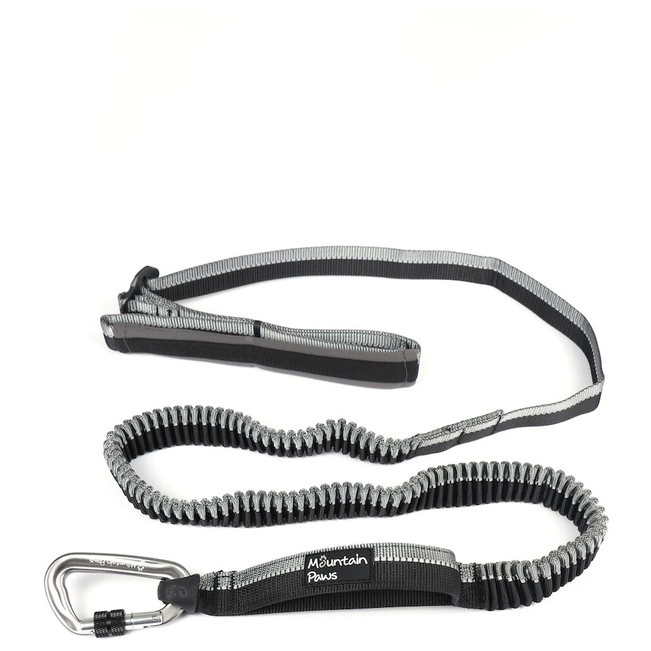 Il guinzaglio elastico regolabile "Guinzaglio Ammortizzatore di Urto" della marca Mountain Paws è ideale per canicross, dogtrekking e passeggiate normali.