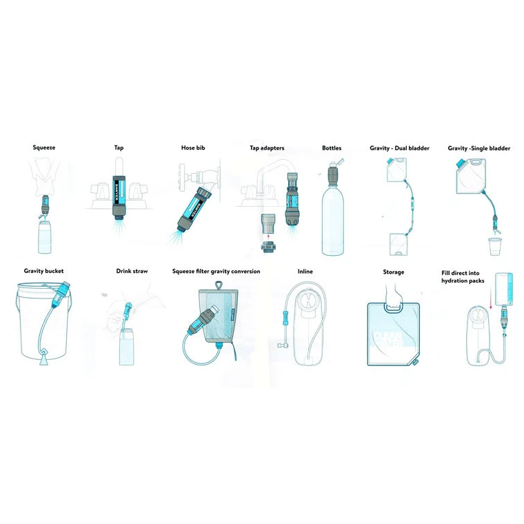 - collegamento a bottiglie pieghevoli SAWYER o CNOC e filtrazione a pressione