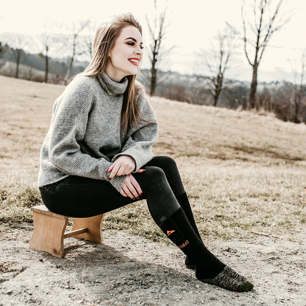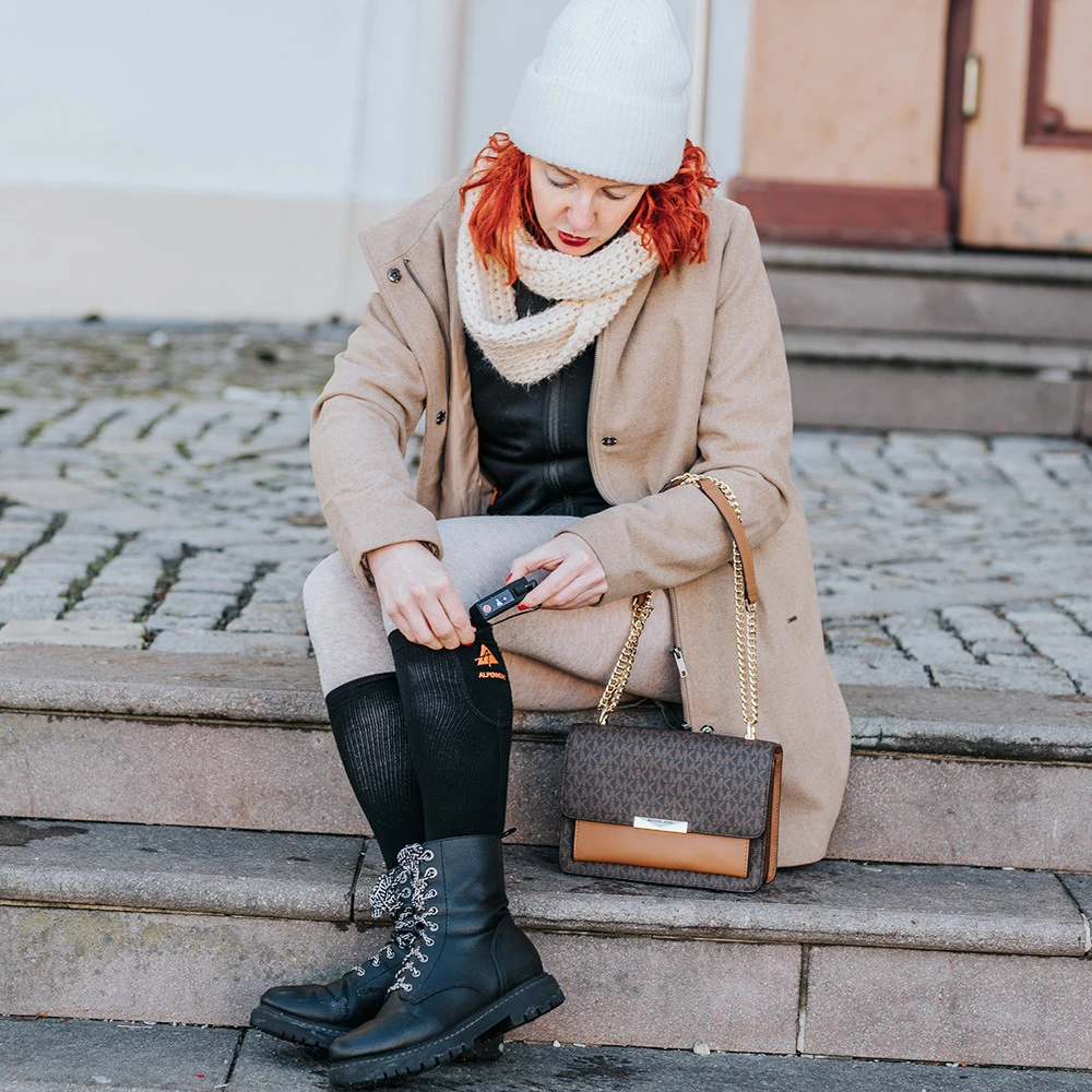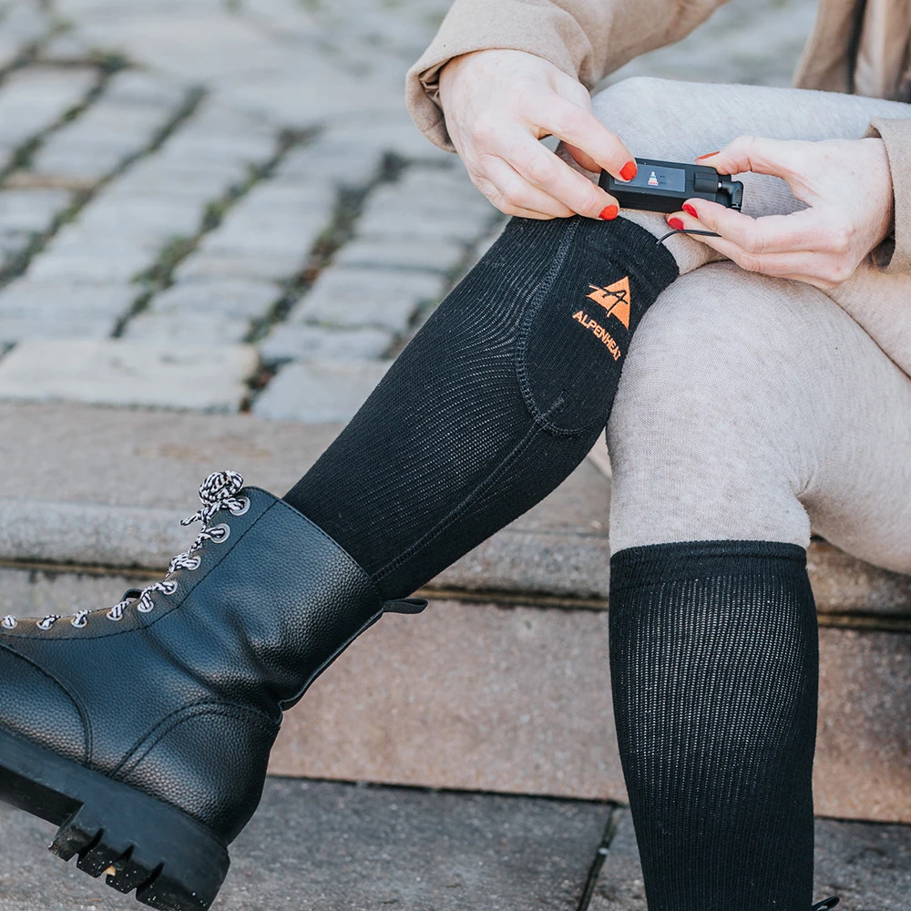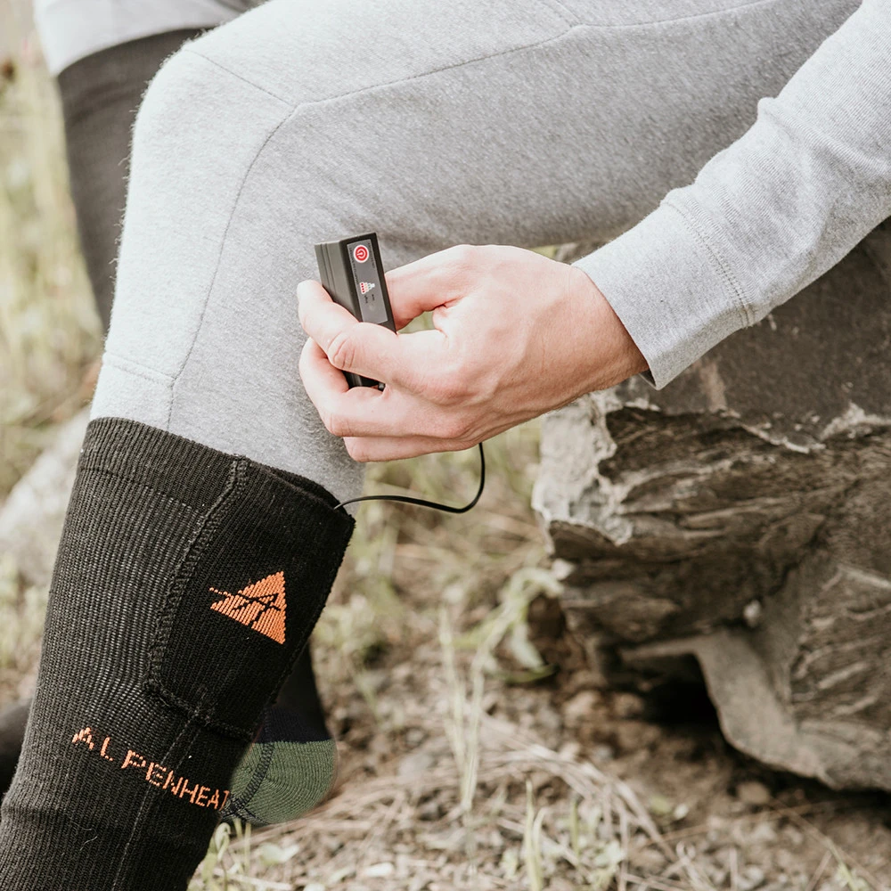Le calze riscaldate Fire Wool Socks di Alpenheat sono ideali per le giornate fredde. Contengono una miscela di lana merino, che garantisce una termoregolazione ottimale. La miscela di fibre di rame ha un effetto antibatterico. L'elemento riscaldante in fibra di carbonio è inserito sotto le dita ed è alimentato da una batteria ricaricabile compatta agli ioni di litio, che si trova nella parte superiore della calza. Puoi impostare tre livelli di riscaldamento in base alle tue esigenze attuali. Con una sola carica, le calze riscaldano per 5-10 ore. La ricarica completa richiede 6 ore tramite cavo USB.