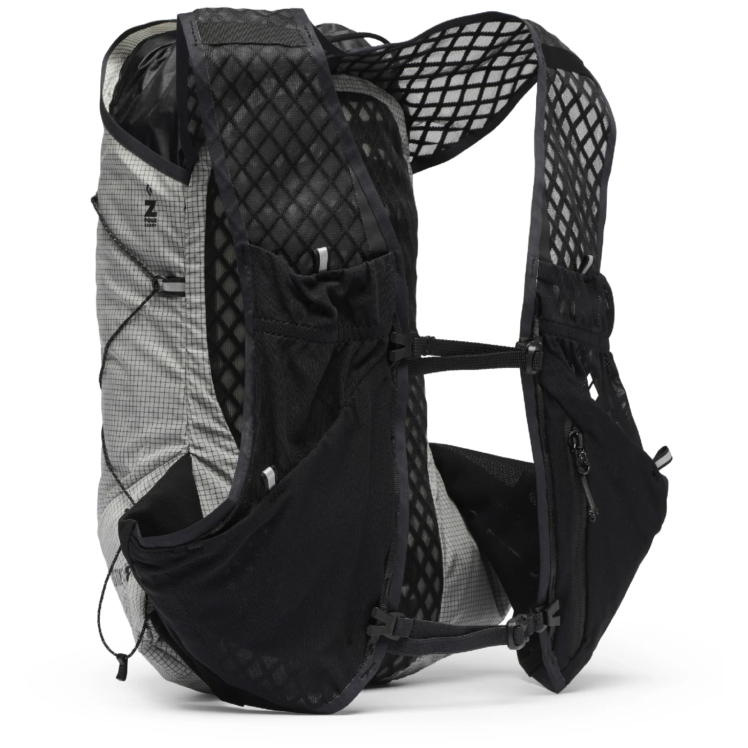 Lo zaino è dotato di custodie integrate per i bastoncini Z per un rapido utilizzo durante la camminata, doppia compressione laterale per regolare il volume, due tasche per soft flask (borracce non incluse), una tasca con zip e due tasche elastiche sugli spallacci. Non mancano due tasche laterali elastiche, una tasca interna con zip e anello portachiavi, né la possibilità di agganciare una piccozza. Il volume è di 8 litri e il peso è di circa 314 g (taglia M).
