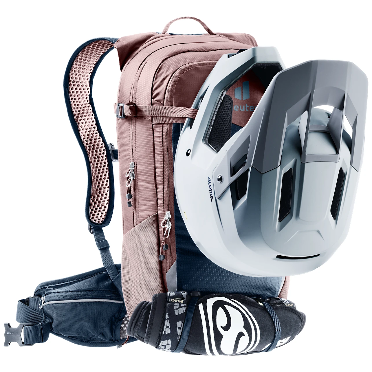 All'interno dello scomparto principale, completamente chiuso da una zip, è presente un idrovora (3 L). La tasca anteriore con cerniera è dotata di un organizer per gli attrezzi, che include uno scomparto per la pompa e una tasca con cerniera con clip per le chiavi. All'esterno sono presenti una tasca per il cellulare, due tasche con cerniera sulla cintura, attacco per il casco/ casco integrato, sistema di stoccaggio per gli occhiali, cinghie per l'attrezzatura aggiuntiva o l'equipaggiamento di sicurezza e tasche laterali in rete. Il volume può essere ampliato.