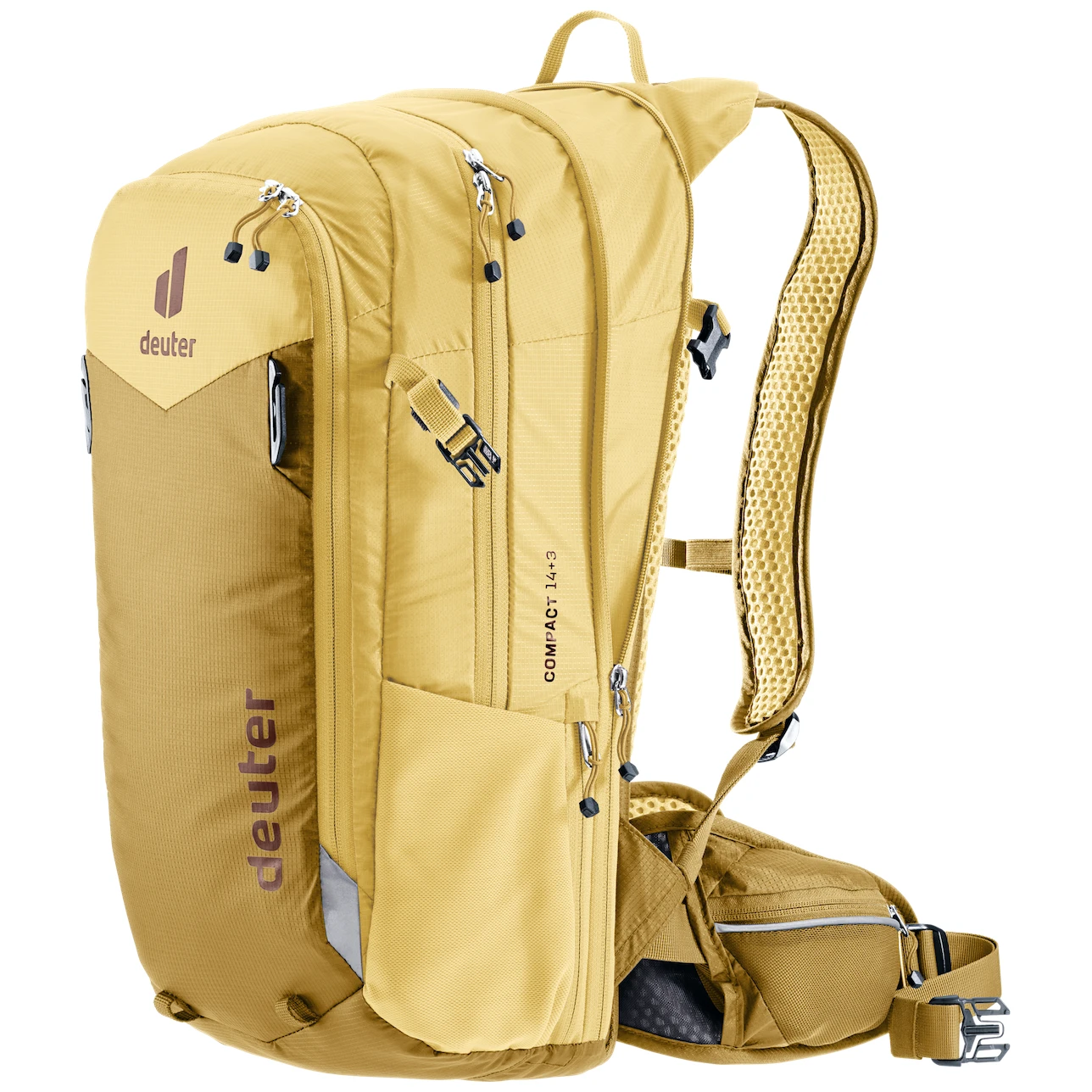 Lo zaino Compact 14+3 del marchio Deuter è il compagno ideale per gite e discese in bicicletta.