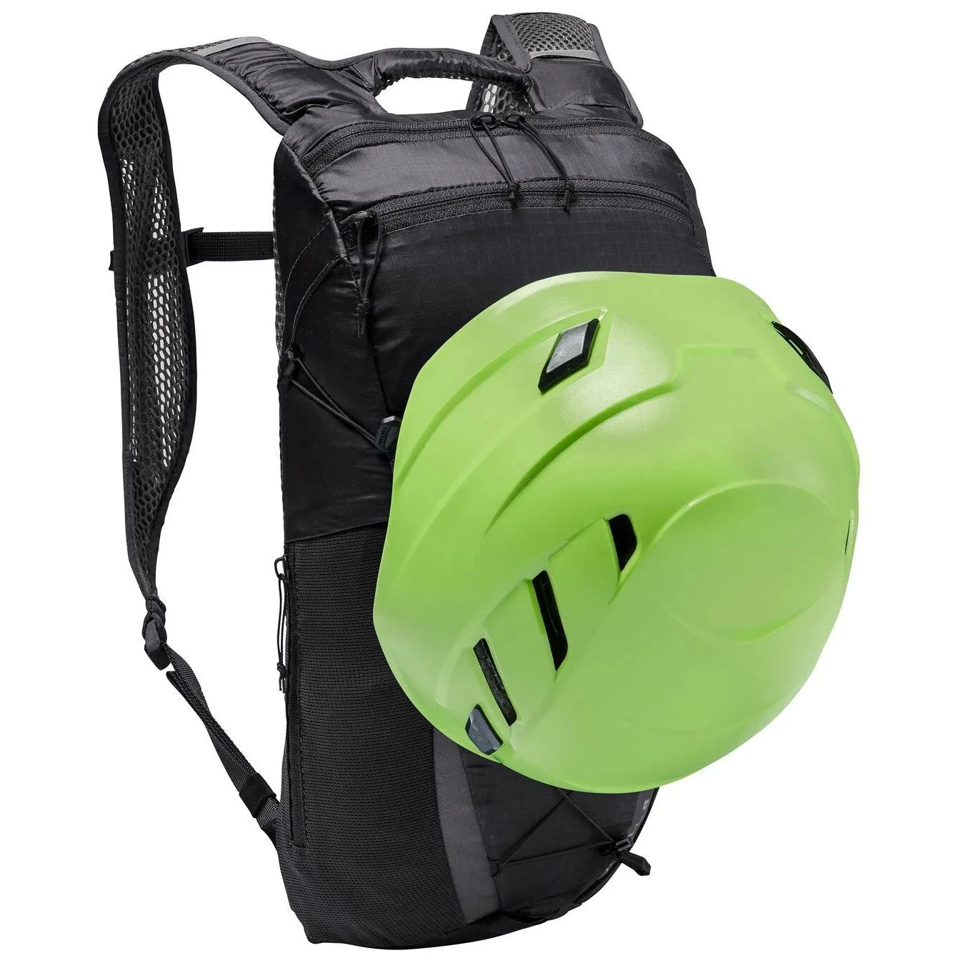 Lo zaino è realizzato nel rispetto dell'ambiente: il tessuto principale siliconato proviene dal riciclo chimico degli pneumatici (bilancio di massa), integrato con poliestere PET riciclato. La finitura Eco Finish senza PFC respinge l'acqua e lo sporco. La certificazione VAUDE Green Shape e bluesign® garantisce una produzione sostenibile ed etica.
