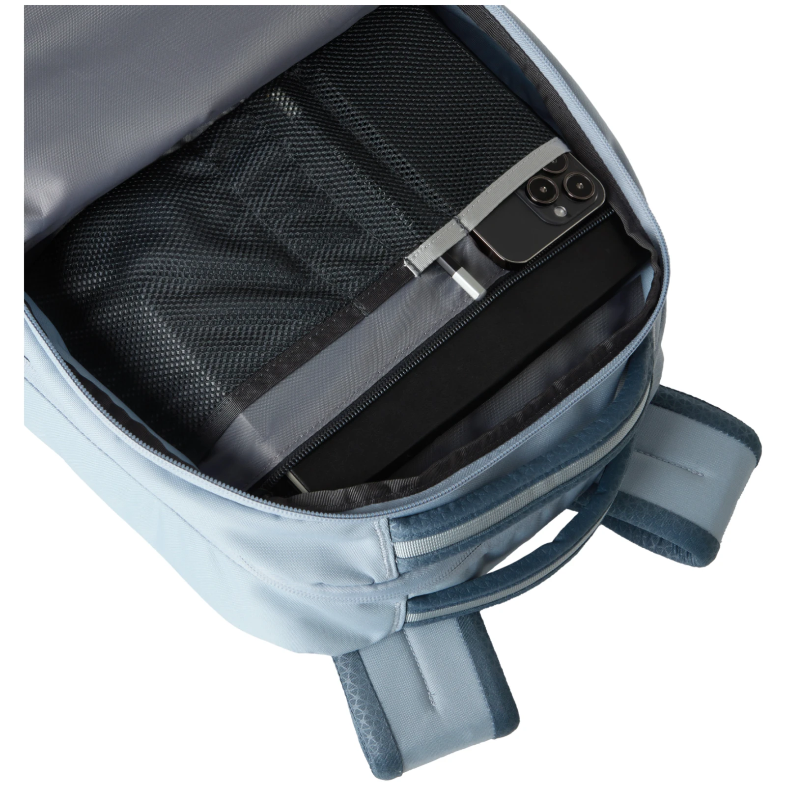 Una tasca separata e imbottita per il computer portatile può contenere anche documenti importanti o qualche libro. La seconda tasca principale consente di riporre comodamente un cambio di vestiti o uno snack. Lo scomparto anteriore è dotato di un organizzatore per piccoli oggetti come telefono, matite o tablet e di una tasca interna separata con cerniera. Lo zaino è dotato anche di tasche laterali per le bottiglie.