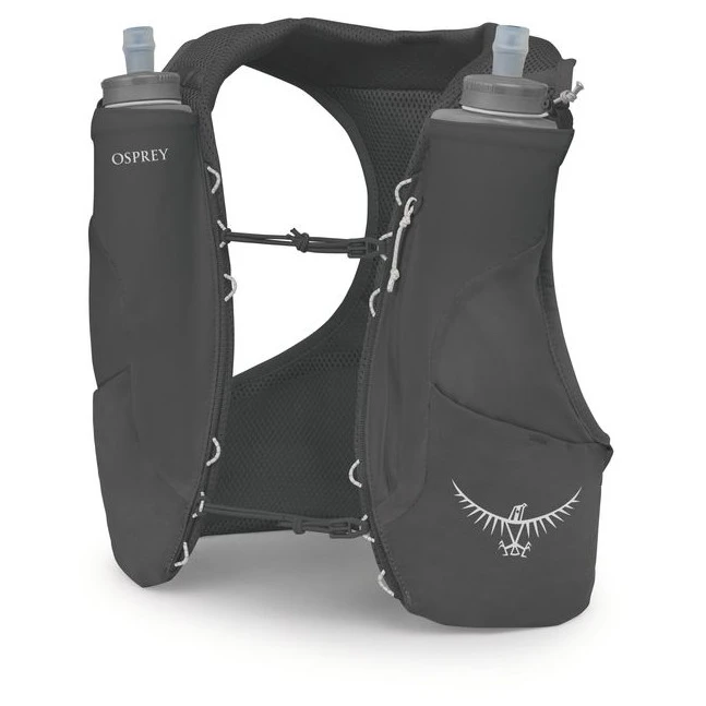 Il gilet viene fornito con borracce morbide da 500 ml, posizionate nella parte anteriore per un rapido accesso durante la corsa. Grazie al taglio aderente e al sistema di regolazione, aderisce saldamente al corpo e minimizza i rimbalzi anche durante il movimento dinamico.