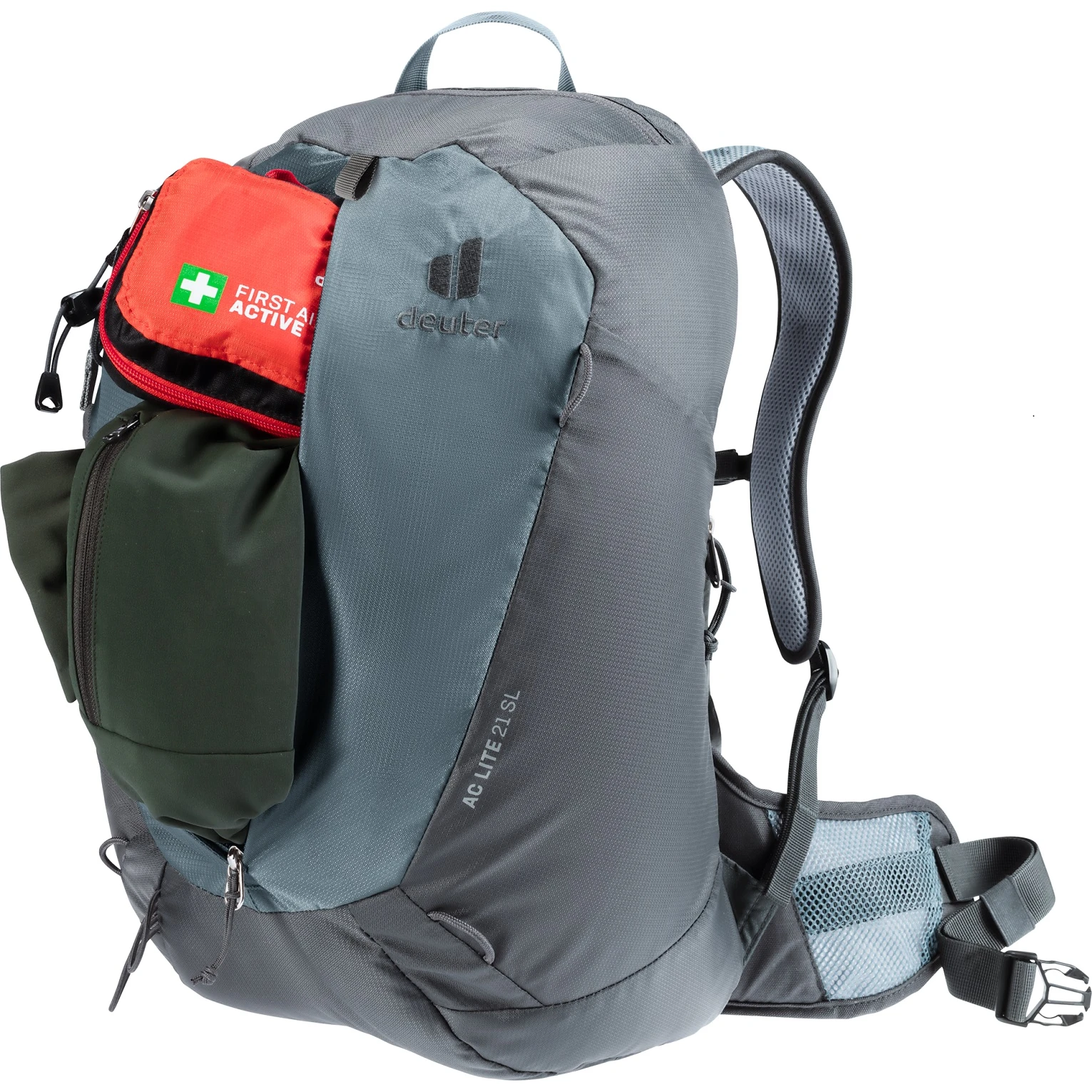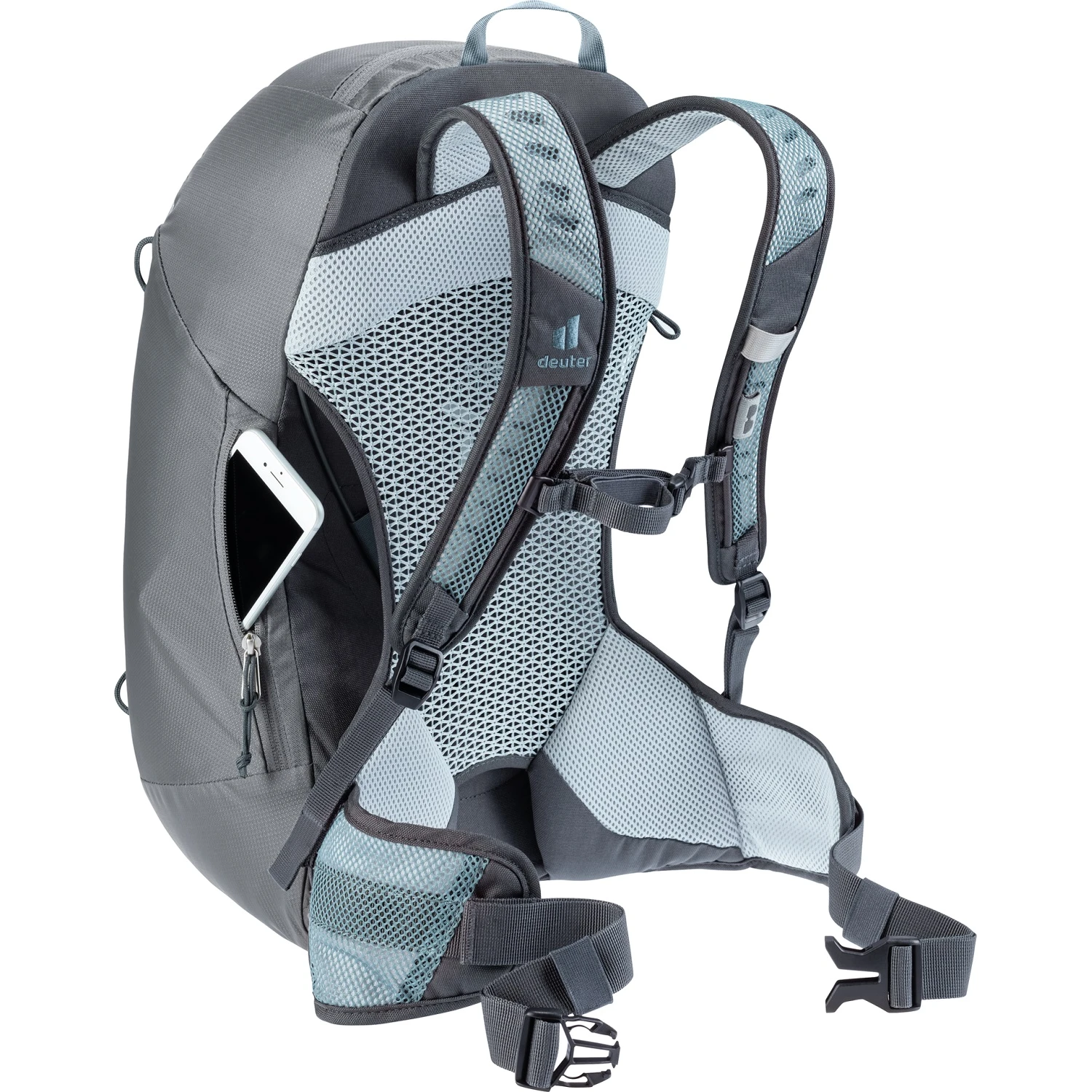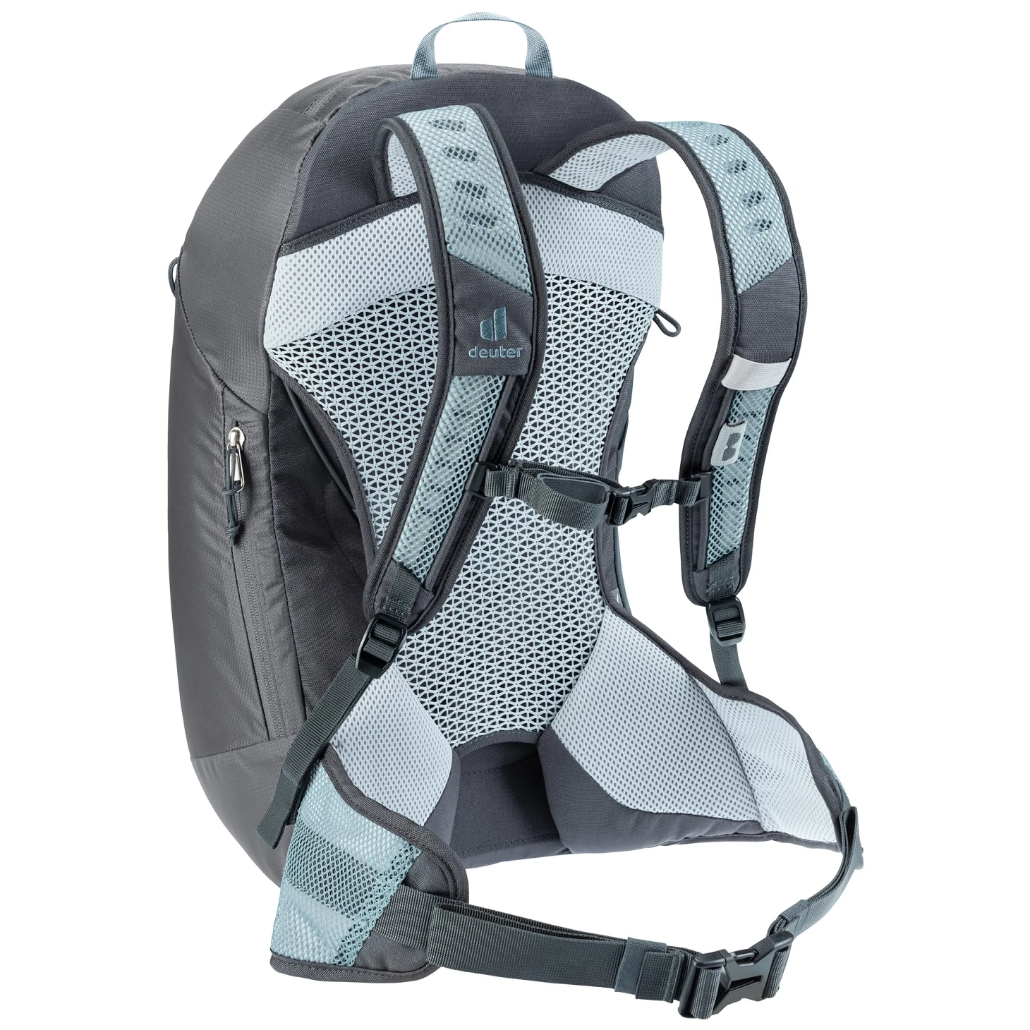 Lo zaino da donna AC Lite 21 SL di Deuter è il compagno ideale per le escursioni giornaliere. Lo zaino è molto leggero e garantisce la massima ventilazione grazie al sistema dorsale Aircomfort con rete. Il telaio in metallo garantisce una distribuzione ottimale del carico e una grande cerniera con apertura a tutta lunghezza per una perfetta visibilità. Lo zaino ha un taglio femminile con schiena più corta e spalle più strette. Una cintura regolabile in vita e sul petto mantiene lo zaino in posizione, insieme a spallacci imbottiti.