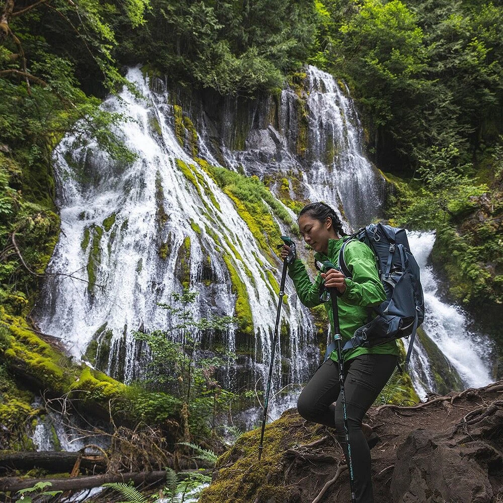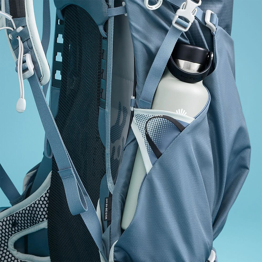 Lo scomparto principale con chiusura arrotolabile e cuciture saldate RF garantisce una protezione affidabile dall'acqua, mentre le tasche esterne in materiali ad asciugatura rapida facilitano l'accesso agli oggetti necessari. Dettagli pratici come le cinghie di compressione laterali, il portapiccozza Stow-on-the-Go, due tasche con zip sulla cintura lombare o una tasca separata per la sacca idrica rendono il Downburst™ la scelta perfetta per le donne attive che vogliono rimanere in movimento – e all'asciutto.