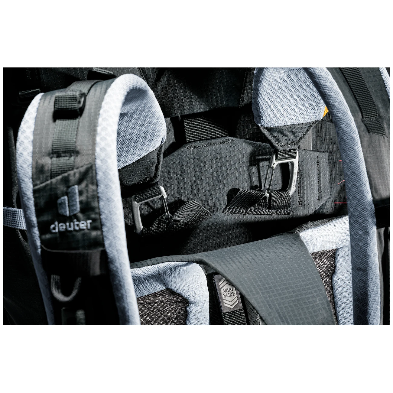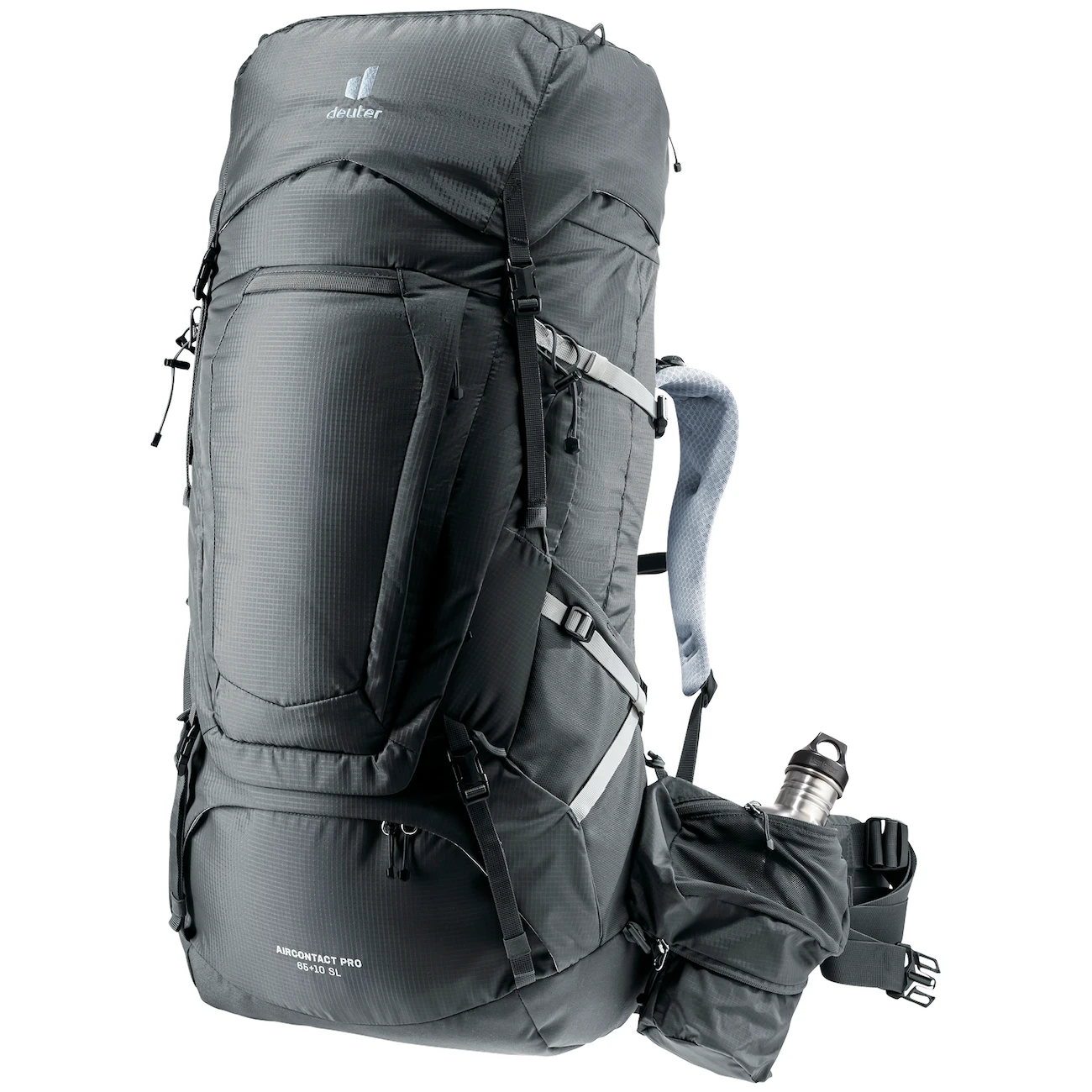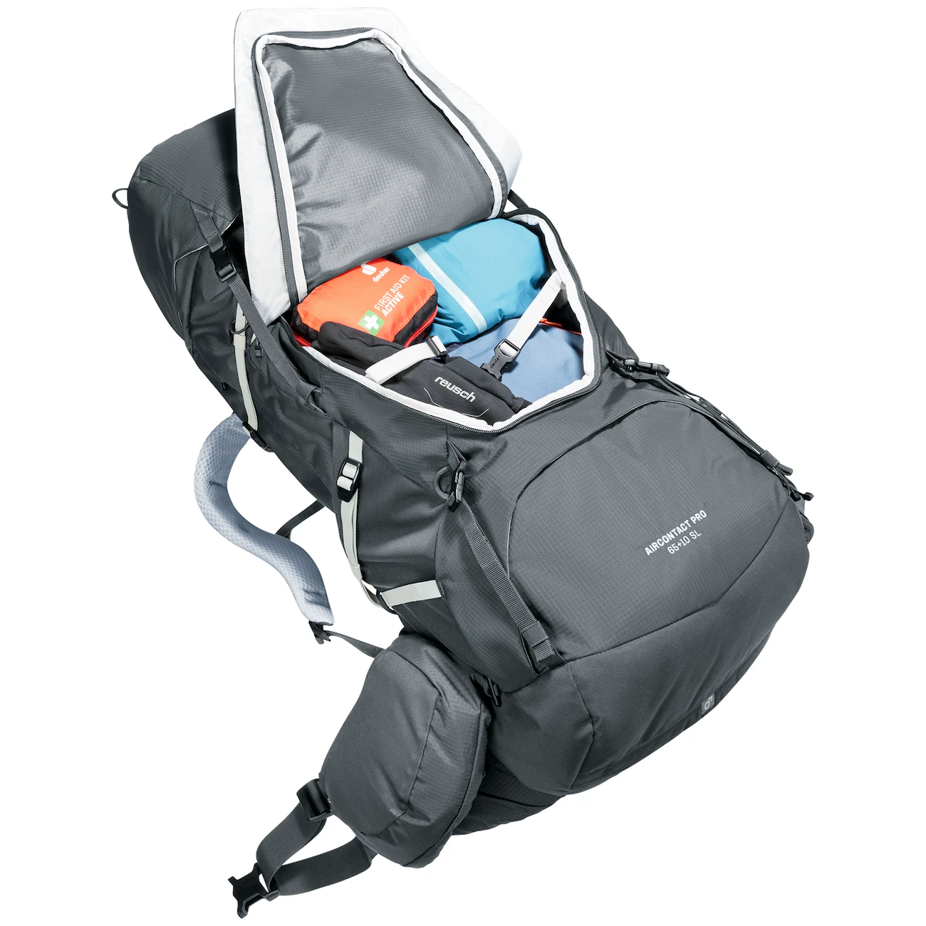 Lo zaino da trekking Aircotact Pro 65+10 SL del marchio Deuter è realizzato in un taglio da donna, con schienale più corto e spalle più strette.