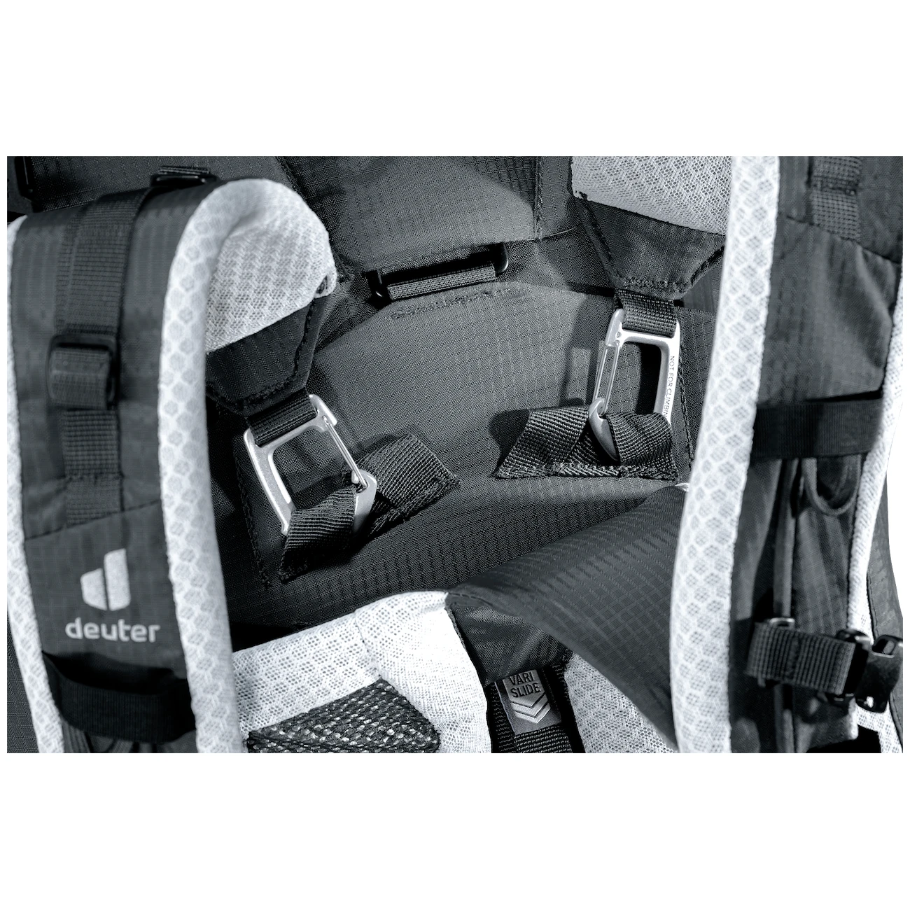 Lo zaino è realizzato in materiale robusto e resistente agli strappi. È estremamente leggero e il 70% del peso grava sulla cintura in vita, generosamente imbottita ed ergonomica, per una migliore distribuzione del peso. Il sistema dorsale Aircontact Pro con schiuma funzionale e rete di ventilazione assicura un comodo scambio d'aria a ogni movimento. I montanti del telaio in alluminio aiutano a mantenere la forma. Grazie alla tecnologia VariSlide, è possibile regolare la lunghezza dello schienale in base alla propria altezza. Gli spallacci ActiveFit hanno una forma ergonomica e sono dotati di una fascia toracica regolabile in due direzioni con fischietto di sicurezza. Il risultato è uno zaino confortevole anche dopo lunghi chilometri e carichi pesanti.