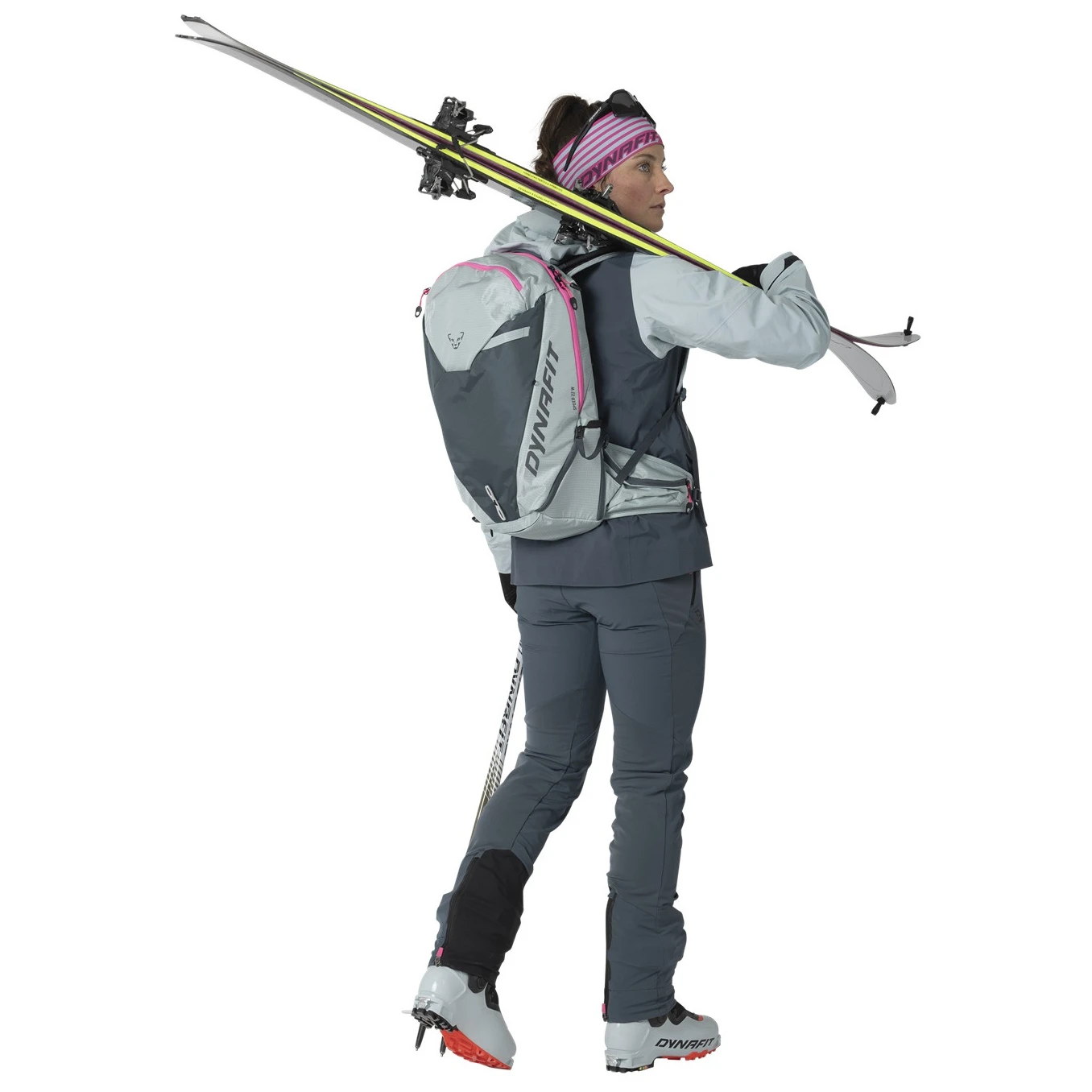 Lo zaino da donna Speed 22 Backpack W di Dynafit presenta una struttura ben studiata con un ampio scomparto principale e uno scomparto separato per i ramponi per proteggere la tua attrezzatura, mantenere tutto in ordine e garantire un rapido accesso.Il pratico supporto per gli sci consente di fissare rapidamente gli sci durante la preparazione degli scarponi. Il sistema di trasporto traspirante e anatomico, con una lunghezza dello schienale adattata alle esigenze delle donne, offre un elevato livello di comfort. Il materiale resistente all'abrasione garantisce la necessaria robustezza a contatto con le rocce.