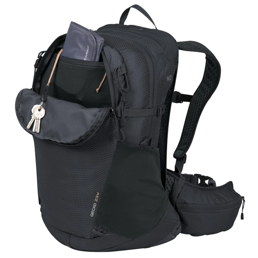 Gli spallacci e la cintura lombare utilizzano la tecnologia Hollow Back System, che combina imbottitura, canali di ventilazione e rete altamente traspirante per una migliore circolazione dell'aria. Pratiche tasche, l'impermeabile integrato, i passanti per i bastoncini da trekking e il cappio per il casco rendono il modello Gecko 23 Lady uno zaino da giorno versatile da donna, che non limiterà i tuoi movimenti.