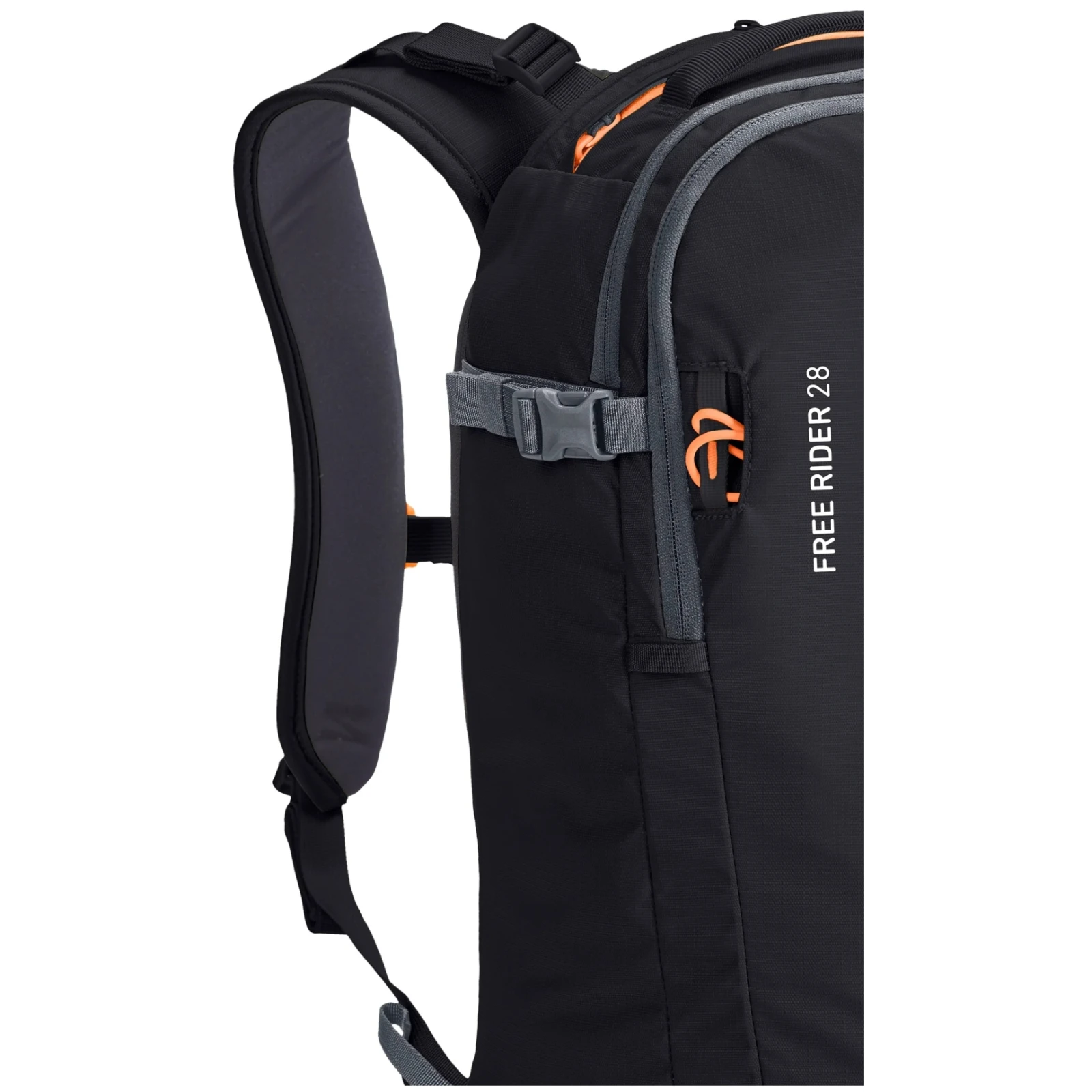 L'Ortovox Free Rider 28 è stato progettato per gli sciatori e gli snowboarder che desiderano uno zaino per le piste più impegnative. Lo zaino ha la possibilità di inserire una protezione spinale certificata Protezione della colonna vertebrale con chiusura. È possibile agganciare tutto il necessario per le discese freeride estreme, compresi una corda e 2 piccozze. Uno zaino altamente resistente e confortevole che si adatta come un guanto anche alle alte velocità. Grazie alla cintura Clasp Flex , lo zaino diventa parte di voi e non vi sbilancia: lo zaino abbraccia perfettamente la vostra schiena.