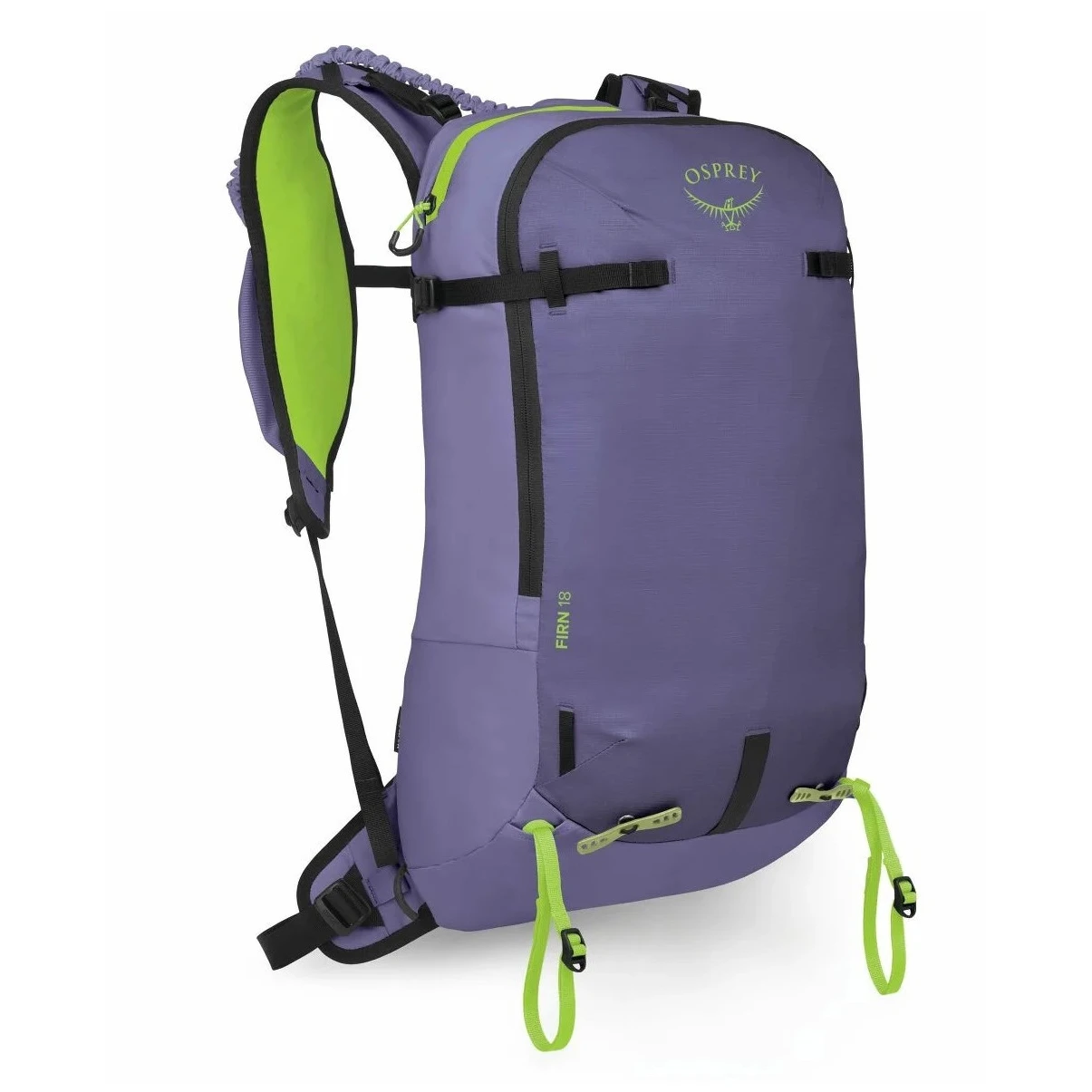 Osprey Firn 18 è un ottimo partner per salite e discese ripide e dinamiche. Grazie al taglio a gilet dell' imbracatura, garantisce la massima stabilità, mentre l 'innovativo laccio da sci consente di riporre facilmente gli sci senza togliere lo zaino, risparmiando tempo ed energia durante le transizioni. Inoltre, offre molto spazio per l'attrezzatura essenziale, tra cui tasche per il telefono, il GPS o i ramponi, ed è dotato di cinghie di compressione per stabilizzare la piccozza.