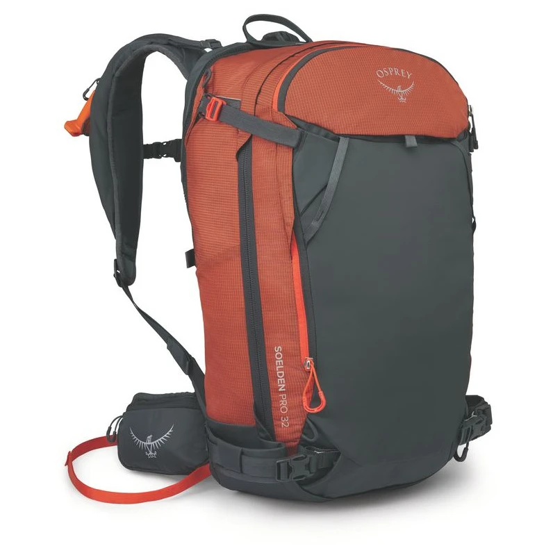 Lo zaino da scialpinismo Soelden Pro Avy 32 di Osprey è una soluzione di punta per tutti gli sciatori e gli appassionati di scialpinismo più esigenti. Questo modello combina il sistema elettronico da valanga Alpride E2 con una disposizione studiata di tasche e cinghie di fissaggio per un movimento efficiente e sicuro sul terreno. Il materiale NanoFly™ con rete di rinforzo UHMWPE garantisce un'estrema resistenza all'abrasione mantenendo un peso ridotto, inoltre tutti i tessuti utilizzati sono certificati bluesign®, PFC free e realizzati in nylon riciclato dall'oceano.