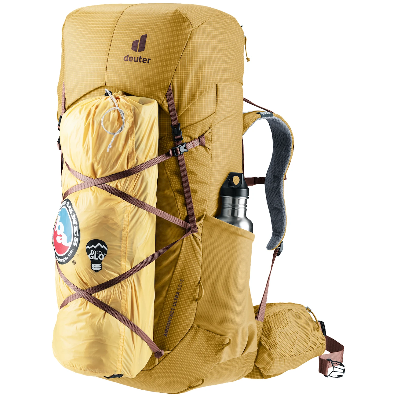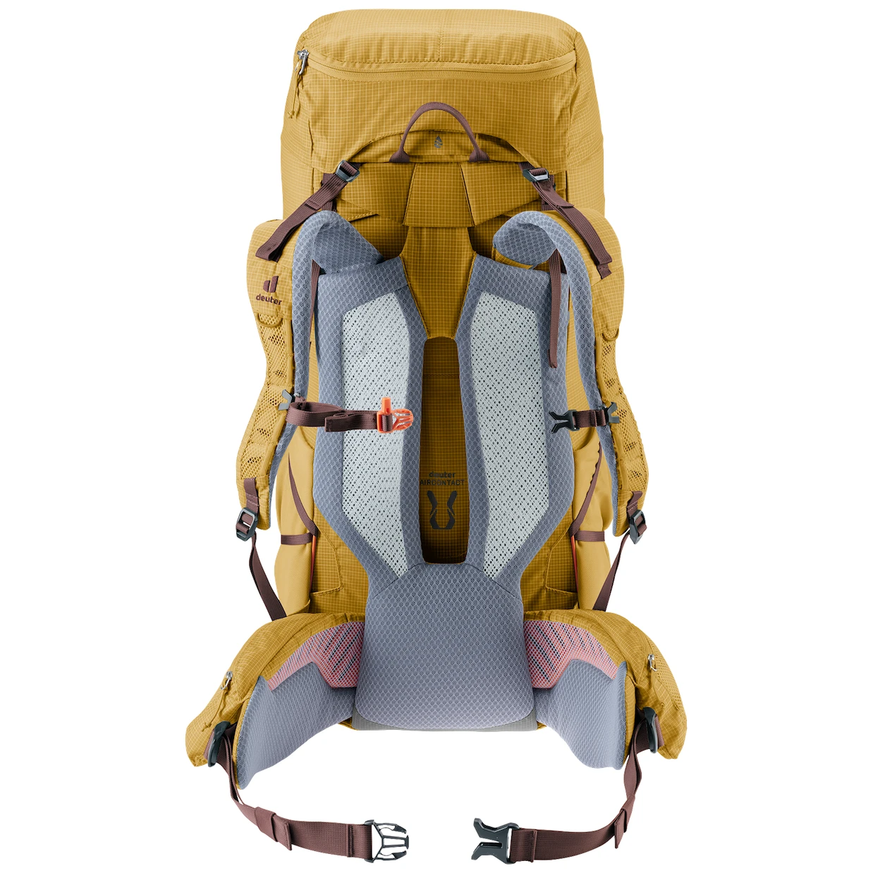 Lo zaino da trekking Aircontact Ultra 50+5 di Deuter è uno zaino realizzato in tessuto certificato bluesign®ridotto all'essenziale. È dotato di un sistema dorsale leggero e facilmente regolabile e di un comodo cuscinetto lombare ergonomico. Lo zaino è dotato di pratici passanti e cinghie variabili per agganciare un GPS, una mappa, una roulotte o una tenda. Apprezzerete anche la possibilità di rimuovere il coperchio superiore regolabile, riducendo il peso complessivo dello zaino.