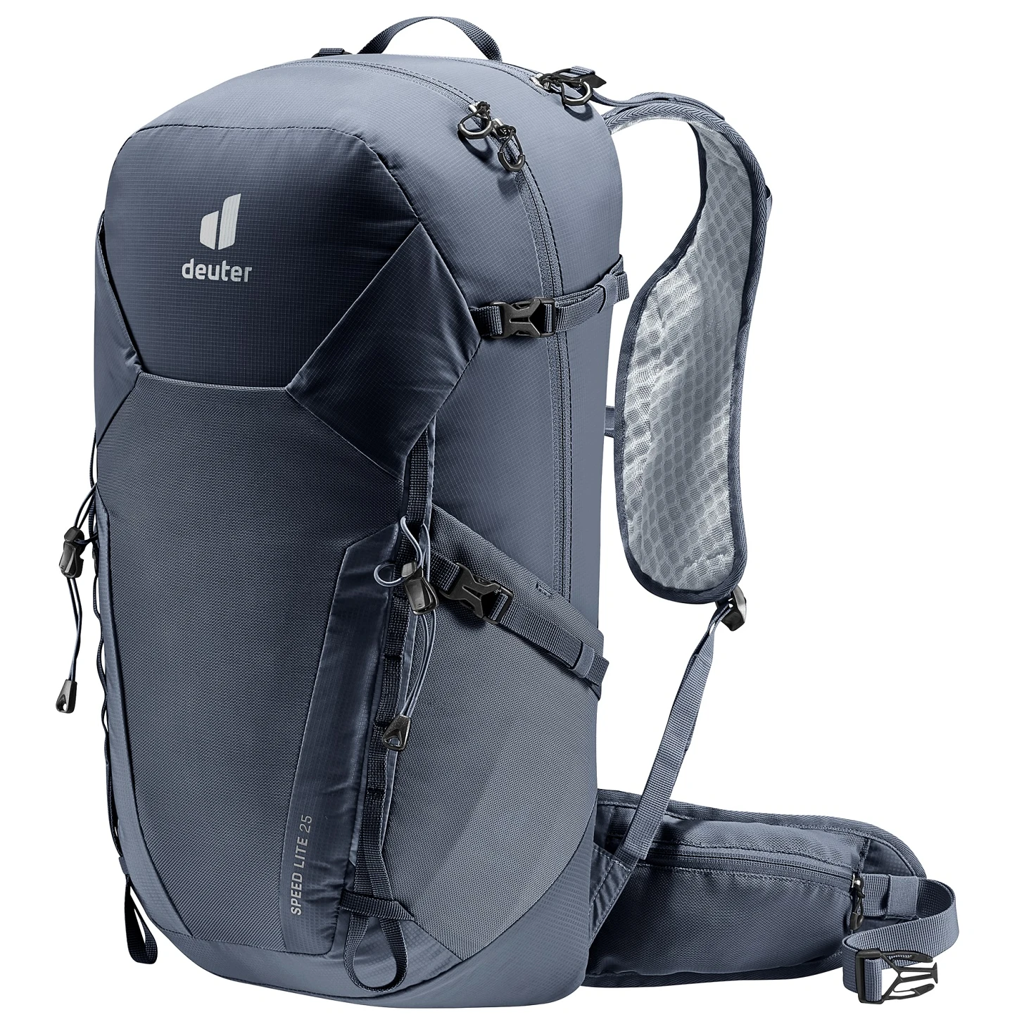 Lo zaino da trekking Deuter Speed Lite 25 è adatto all'escursionismo e al trail running. Lo zaino è leggero e sostenibile grazie al sistema dorsale Lite di deuter, agli spallacci traforati, alla cintura in vita traspirante, alla cinghia sternale regolabile con precisione e al tessuto della scocca 100% riciclato e certificato bluesign®. Lo zaino è inoltre dotato di cinghie di compressione laterali, progettate per l'escursionismo veloce e il trail running, che riducono efficacemente l'oscillazione del carico e consentono una gamma completa di movimenti. La tasca sugli spallacci può contenere tutto ciò che serve sul sentiero.