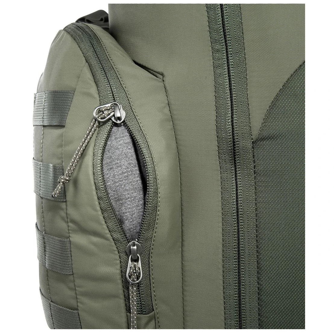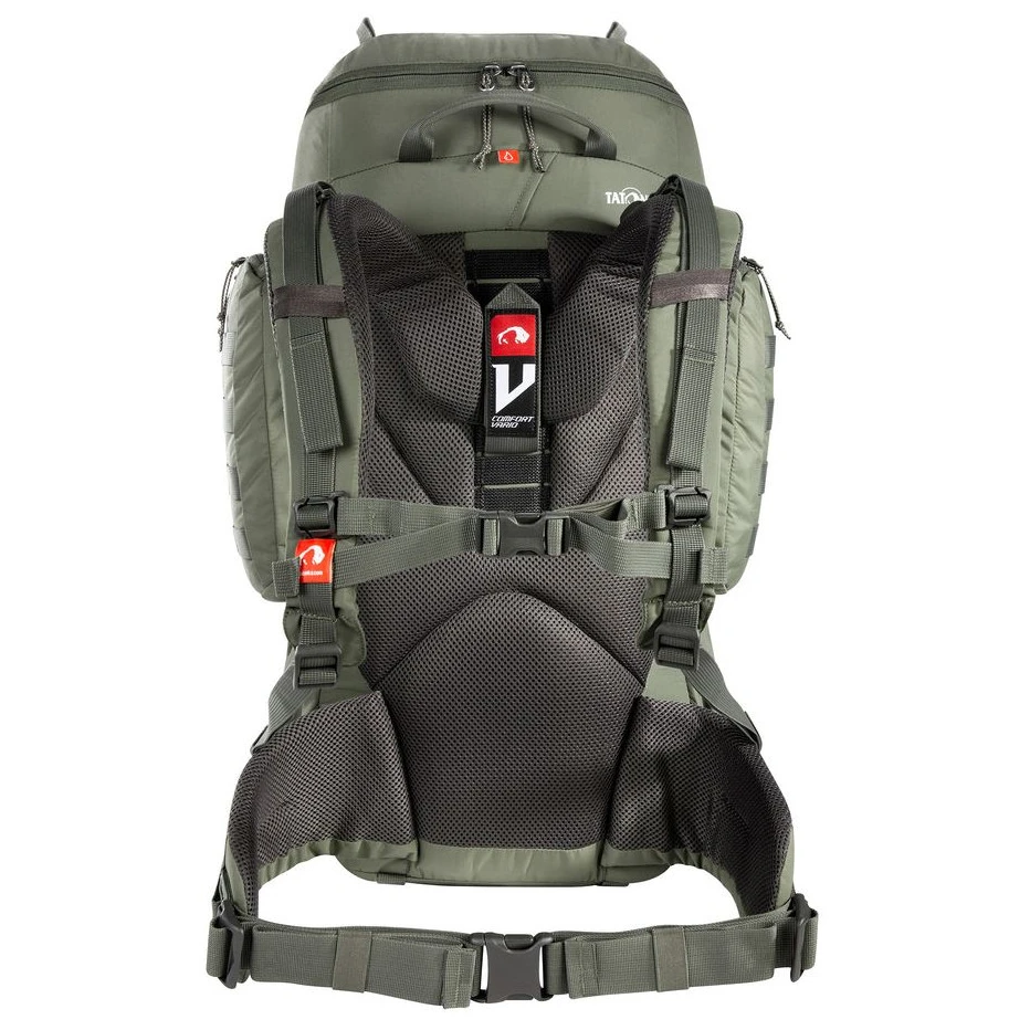 Lo scomparto principale è completamente apribile, il che facilita notevolmente l'organizzazione e l'accesso all'attrezzatura. Lo scomparto inferiore separato è ideale per il sacco a pelo o per separare gli indumenti sporchi. Lo zaino offre anche due spaziose tasche laterali con zip e un canale aperto dietro di esse per riporre i pali della tenda. I pratici passanti sul coperchio, sulla parte anteriore e laterale consentono di fissare ulteriore attrezzatura, mentre le cinghie di compressione aiutano a stabilizzare il carico.
