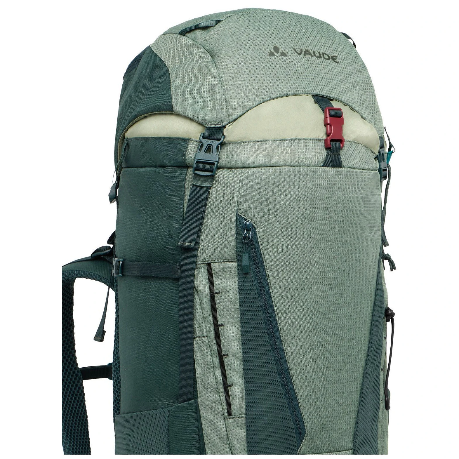Zaino da trekking versatile Asymmetric 42+8 di Vaude è adatto all'escursionismo, al trekking alpino e ai sentieri di lunga percorrenza. Il volume di 50 litri unisce un piacevole comfort di utilizzo. Anche nelle lunghe escursioni, il sistema di trasporto Tergolight Comfort Space garantisce un elevato comfort di utilizzo. La lunghezza dello schienale e il posizionamento del carico dello zaino da trekking possono essere regolati in base alle dimensioni del corpo. Gli spallacci Ergoshape offrono alle braccia un'ampia libertà di movimento e distribuiscono il peso in modo ottimale, così come la cintura in vita comodamente imbottita. Lo spazioso scomparto principale è accessibile dalla parte superiore e anteriore. Lo scomparto anteriore elasticizzato offre spazio per tutto ciò che è necessario tenere a portata di mano quando si è in movimento. Grazie alla ventilazione ottimizzata della camera anteriore, qui si asciugano anche i capi bagnati. Le tasche laterali elasticizzate per la borraccia, la macchina fotografica o i bastoncini di frutta sono accessibili senza doverle togliere. Lo zaino è utile anche per le escursioni alpine: piccozze e bastoncini possono essere agganciati all'anello del materiale e i ramponi, ecc. possono essere fissati alla catena. Due cinghie di compressione su ciascun lato e una sotto il coperchio. Il cinturino superiore è dotato di una fibbia di riserva. Il coperchio con scomparto interno è regolabile in altezza.