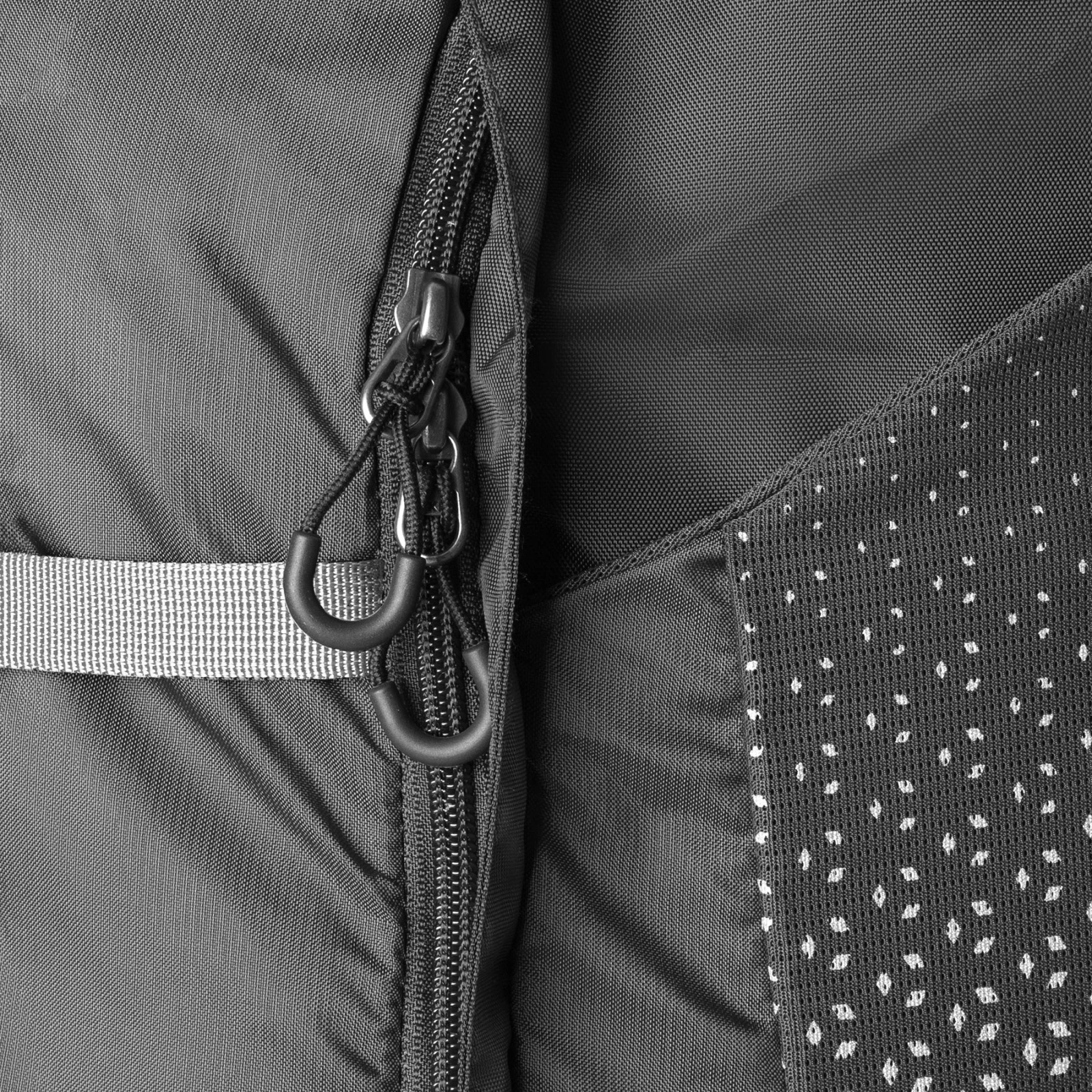 Il sistema dorsale in rete crea uno spazio tra la schiena e lo zaino. L’aria può circolare liberamente, migliorando la ventilazione della schiena e accelerando l’evaporazione del sudore. Lo svantaggio è una leggera riduzione del volume interno e un centro di gravità meno stabile.