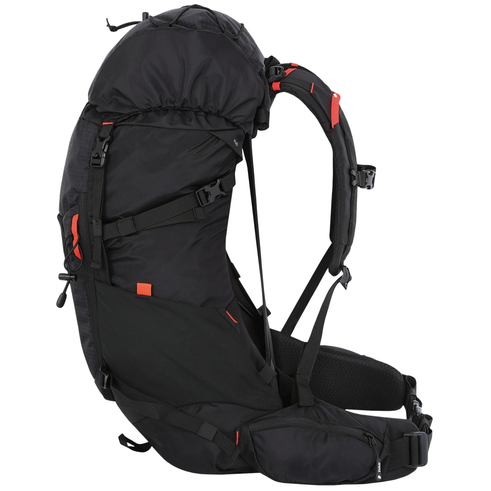 Lo zaino offre accesso dall'alto e frontale con cerniera, facilitando l'accesso all'attrezzatura. Nella parte superiore (coperchio) ci sono due tasche, completate da un cordoncino elastico per riporre rapidamente gli oggetti. Non mancano inoltre una tasca frontale in rete e tasche laterali in rete, ad esempio per una bottiglia. Per ulteriore attrezzatura sono disponibili cinghie di compressione laterali che consentono di fissare oggetti più grandi. Lo zaino ha anche una predisposizione per sacca idrica ed è inclusa una copertura antipioggia per la protezione in caso di maltempo.