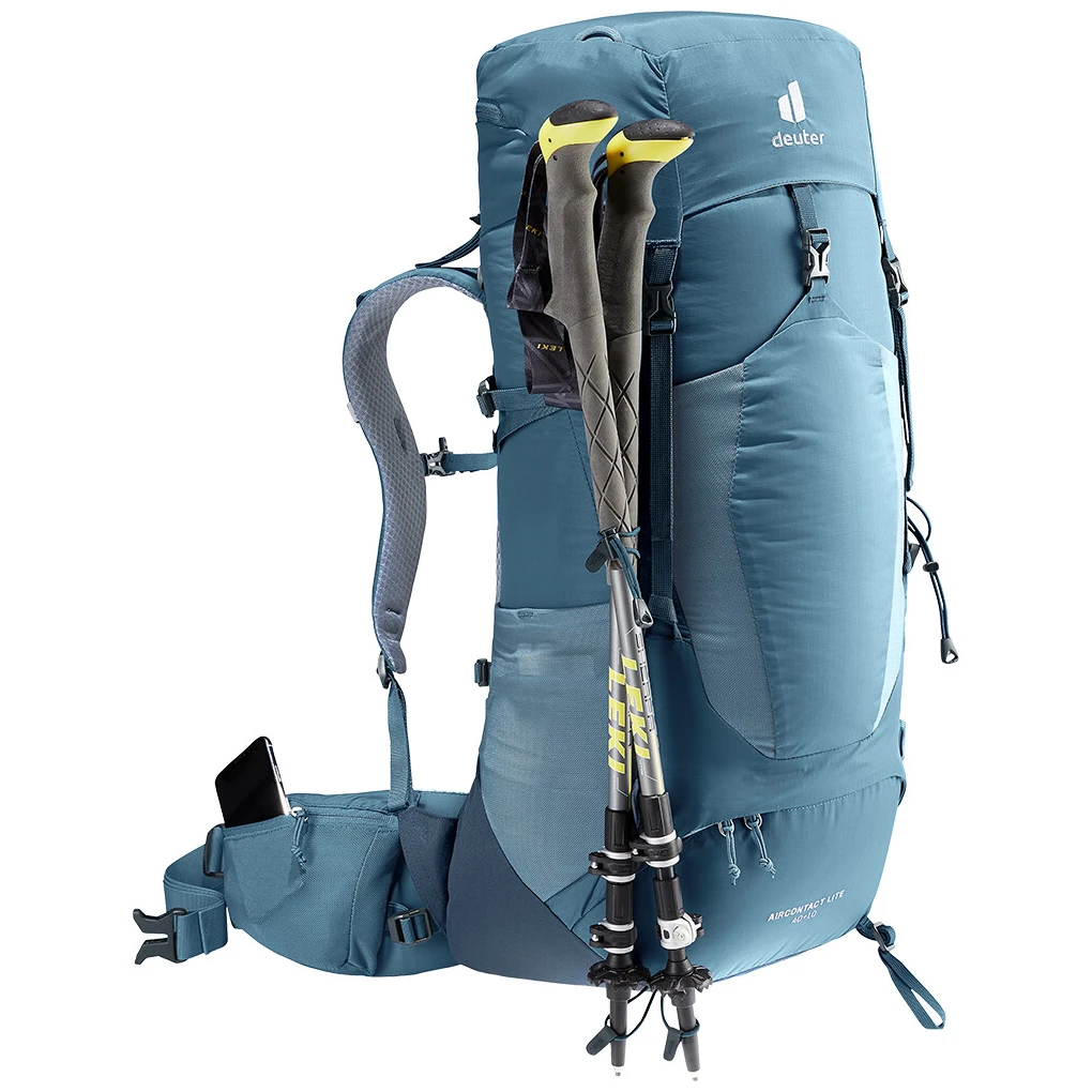 Zaino leggero di alta qualità Deuter Aircontact Lite 40 + 10 per lunghe distanze. Il sistema di ventilazione dello schienale, la lunghezza dello schienale regolabile o il coperchio rimovibile che può essere utilizzato come zaino o borsa separata.