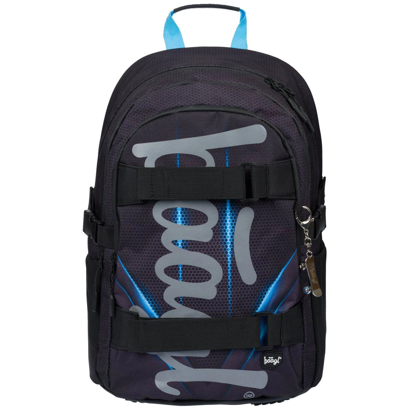 Lo zaino scolastico ergonomico Skate del marchio Baagl è adatto ai bambini dalla terza elementare della scuola primaria fino alla seconda media. Ha una tasca per il notebook e cinghie per lo skateboard.