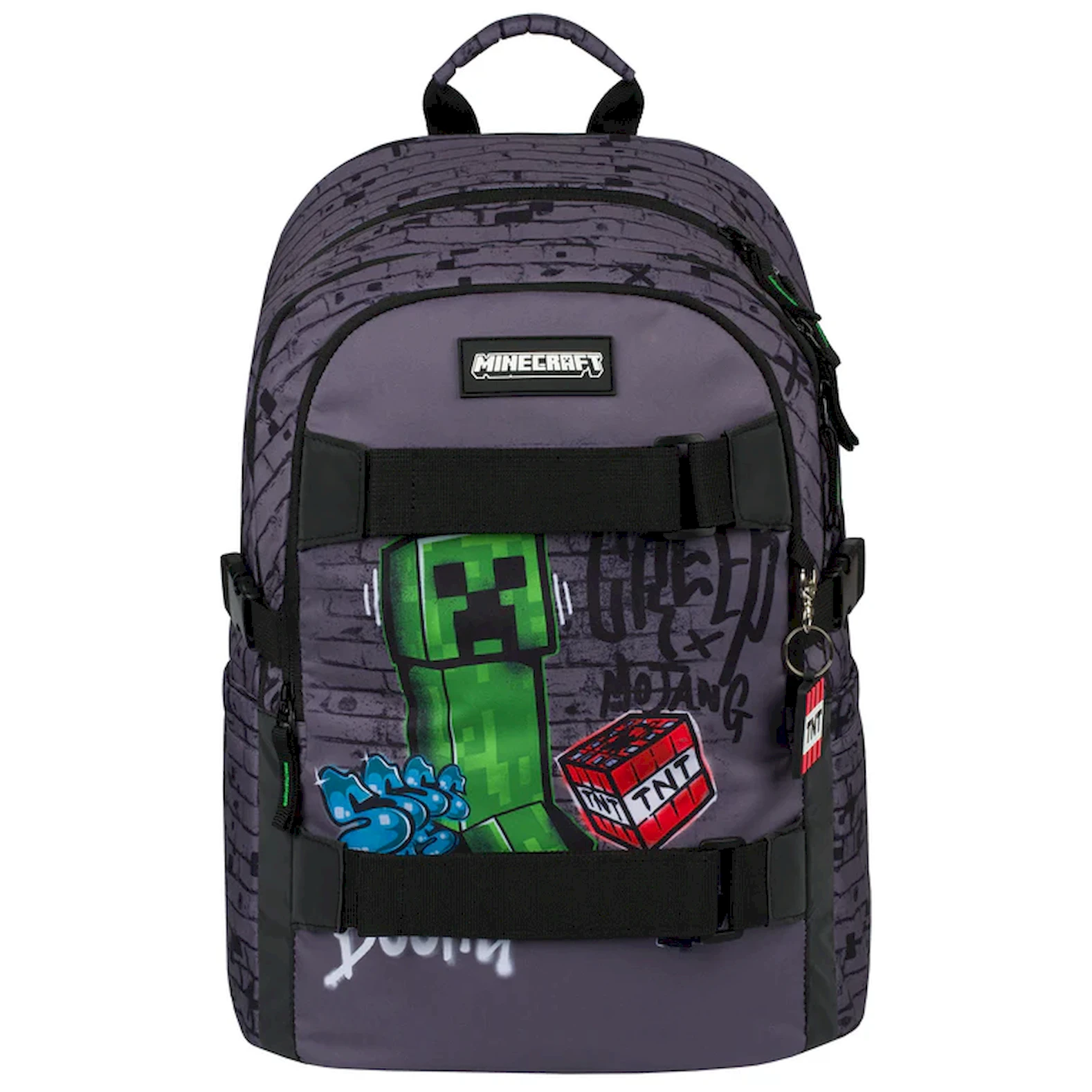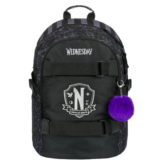 Lo zaino è realizzato in materiale resistente e impermeabile. Ha tre scomparti separati con zip. All'interno è presente un pratico organizer e una tasca per notebook da 15" o tablet. Due tasche laterali in rete sono ideali per una bottiglia d'acqua. Sul davanti sono presenti cinghie per fissare lo skateboard. Gli elementi riflettenti posizionati su tutti i lati aumentano la visibilità del bambino in condizioni di scarsa illuminazione.