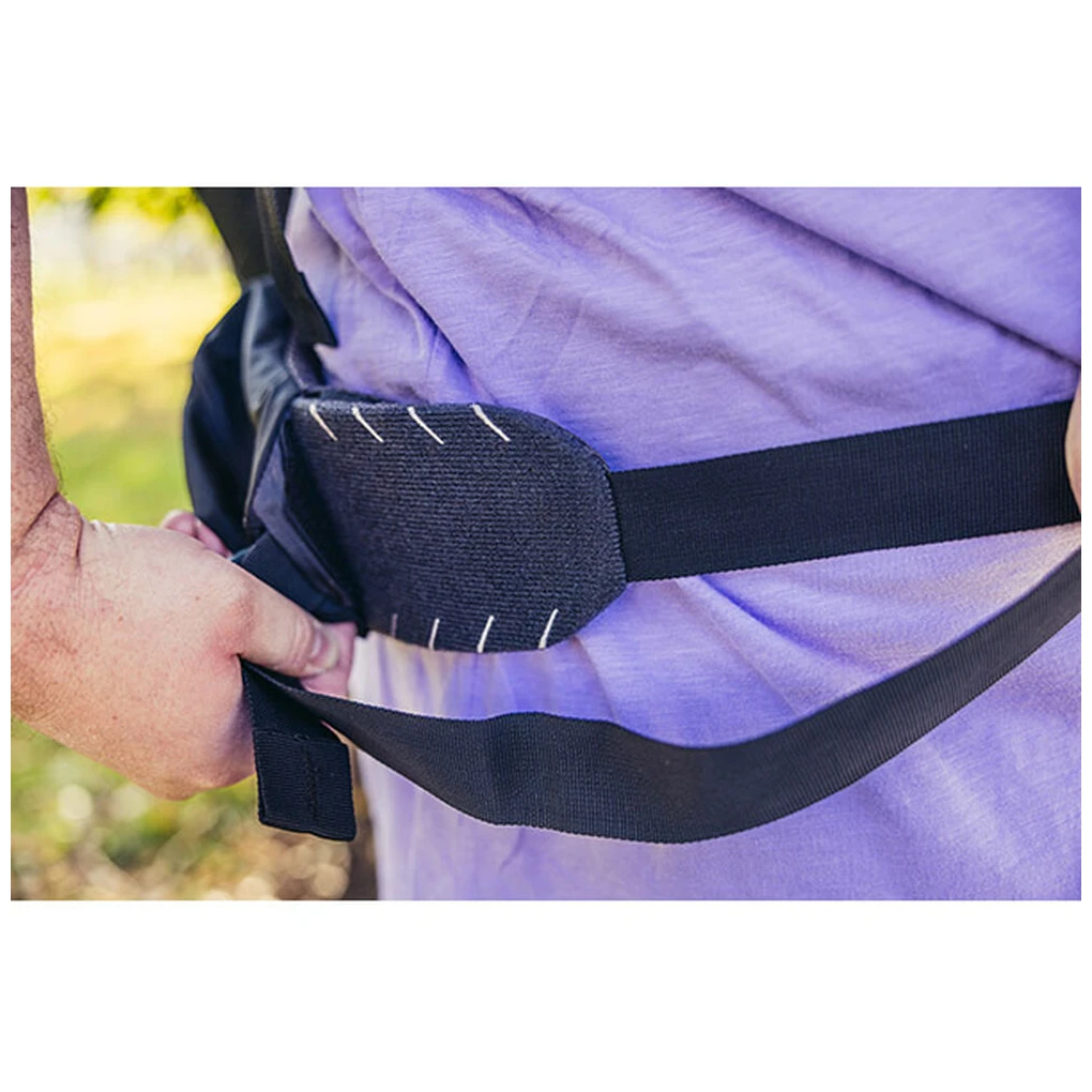 La cintura addominale crea un ulteriore punto di sostegno ed aiuta a distribuire il peso del carico dalle spalle al bacino. La cintura di alta qualità e ben posizionata riesce a supportare anche più del 60% del peso dello zaino.