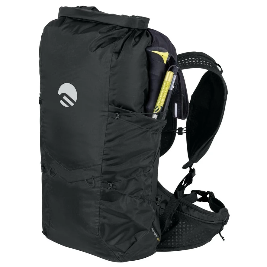 L'organizzazione è studiata per un utilizzo rapido sul campo. La chiusura roll-top protegge il contenuto dello zaino, il sistema di compressione laterale può essere gestito anche mentre cammini senza togliere lo zaino e gli elastici consentono di agganciare i bastoncini da trekking. Non mancano tasche sugli spallacci, sulla cintura lombare e tasche laterali per un facile accesso all'attrezzatura. La compatibilità con sistemi di idratazione, il fischietto e il portachiavi sono inclusi.
