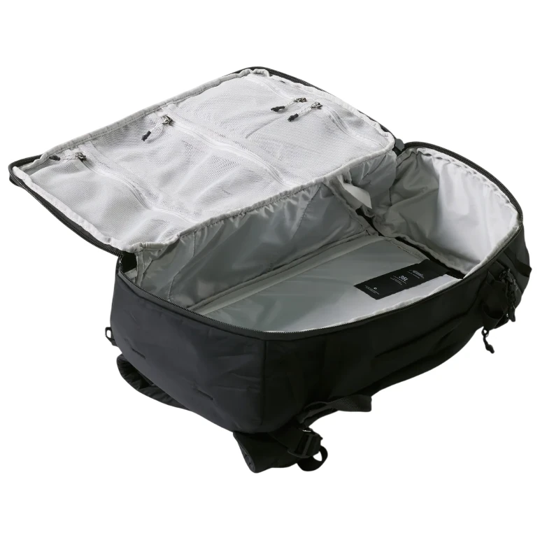 Lo zaino è dotato di un sistema di tasche ben studiato, inclusa una tasca esterna organizer con organizzazione multistrato, una tasca superiore con fodera morbida resistente ai graffi e una tasca imbottita per laptop con doppio accesso, protetta da un doppio fondo e chiusura magnetica. La sicurezza è aumentata da cerniere su tutte le tasche esterne con passanti di sicurezza e dalla tasca segreta Smuggler™ situata dietro il pannello posteriore. Dettagli pratici come il passante per il manico del trolley, la tasca per la borraccia, la catena a margherita, le cinghie di compressione e le numerose maniglie rendono il GlobeRider35 un compagno affidabile per aeroporti, città e viaggi più lunghi.