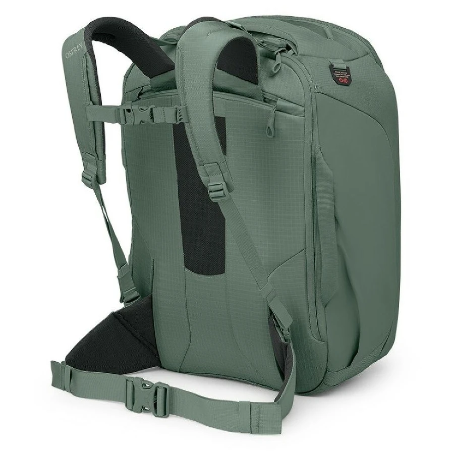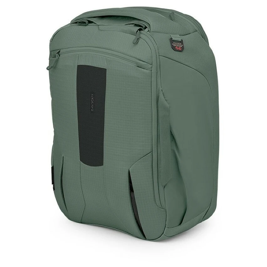 La borsa da viaggio Sojourn Porter 46 di Osprey è la scelta perfetta per gli appassionati di viaggi che cercano un partner affidabile per riporre tutta l'attrezzatura. L'attrazione principale è il sistema dorsale regolabile in altezza che trasforma la borsa in un comodo zaino. Questo può essere riposto/piegato in una tasca separata con cerniera in caso di trasporto o di check-in in aeroporto. Il sistema dorsale è composto da spallacci traspiranti e imbottiti con cintura toracica e cintura in vita con fibbia ErgoPull. Diverse maniglie imbottite, disposte lungo il perimetro della borsa, assicurano una comoda movimentazione, ad esempio durante il check-in o il carico in auto.