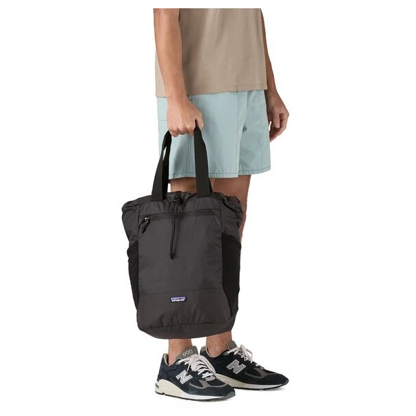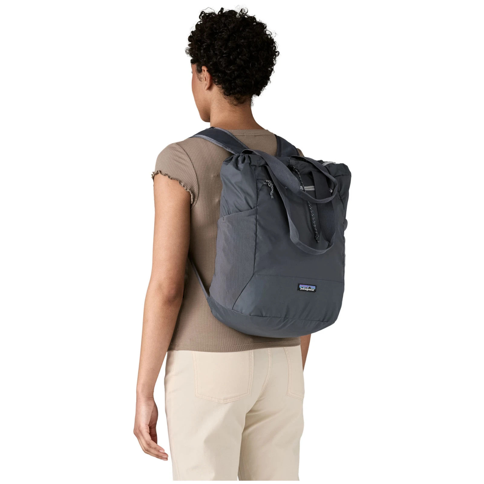 Lo zaino Terravia Tote Pack di Patagonia combina la praticità di uno zaino e di una borsa in uno. Puoi portarlo sulla schiena con comodi spallacci imbottiti e pannello posteriore, oppure a mano come una borsa leggera. La struttura è realizzata in resistente nylon riciclato con rivestimento idrorepellente, che protegge il contenuto in caso di pioggia leggera.