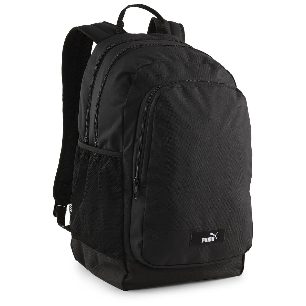 Zaino Academy Zaino per la scuola e lo studente Puma colpisce per l'ampio spazio e il design interessante. È realizzato con una combinazione di poliestere riciclato, poliestere e rete, e ha un supporto in poliuretano per una maggiore resistenza all'acqua. È presente uno spazioso scomparto principale con cerniera a due vie, una tasca frontale con cerniera, 2 tasche laterali in rete e uno scomparto interno con fodera elastica. Per un comfort senza pari, è presente un pannello posteriore imbottito con cuciture, spallacci regolabili e imbottiti con cuciture e una cinghia di trasporto.