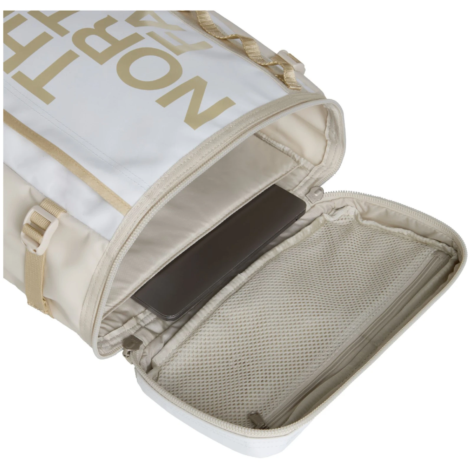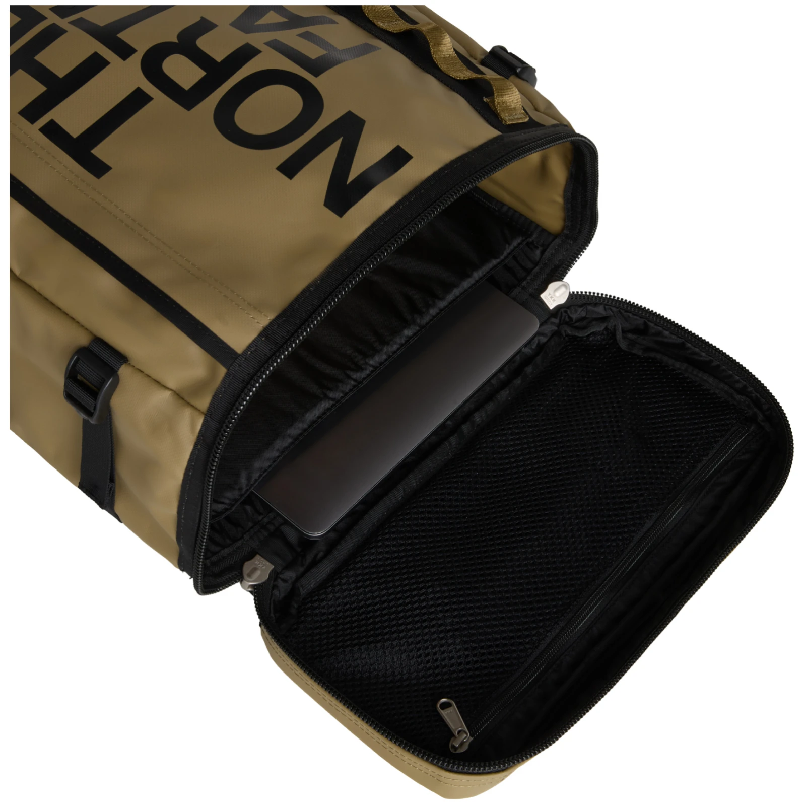 È realizzato in materiale Base Camp estremamente resistente e rigido. È dotato di un pannello posteriore e di spallacci imbottiti, oltre che di una cintura toracica che lo rende comodo da indossare. Lo zaino si riempie nella parte superiore attraverso l'ampio coperchio, in modo da avere una buona visione del contenuto. Aprire con la cerniera con grandi passanti. All'interno è presente una tasca posteriore nascosta per smartphone, una tasca per tablet con cerniera, un portabottiglie interno, una custodia imbottita per laptop fino a 15", una tasca interna in rete con cerniera e clip per chiavi e un'altra tasca interna. All'esterno, una tasca con cerniera e maniglie con cinghie alle quali è possibile agganciare altri oggetti. Le cinghie di compressione laterali regolano facilmente il volume complessivo.