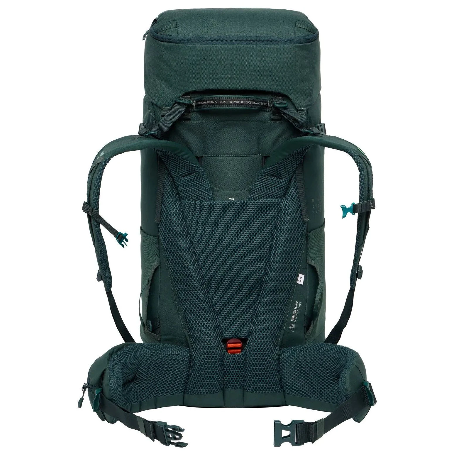 Realizzato principalmente con materiali riciclati con trattamento idrorepellente Eco Finish senza PFC, lo zaino è contrassegnato con VAUDE Green Shape e certificazione bluesign®, che garantisce una produzione ecologica e una lunga durata.