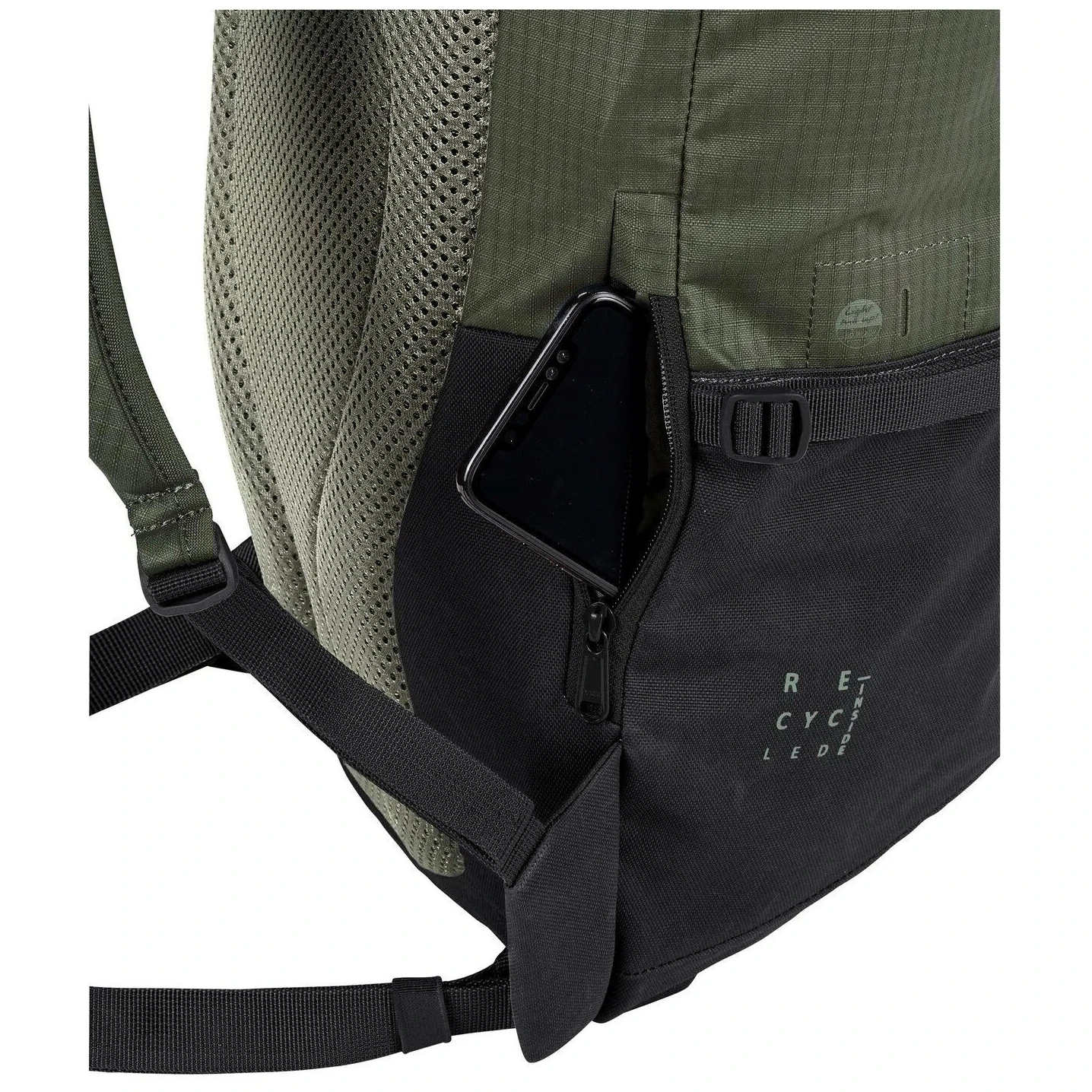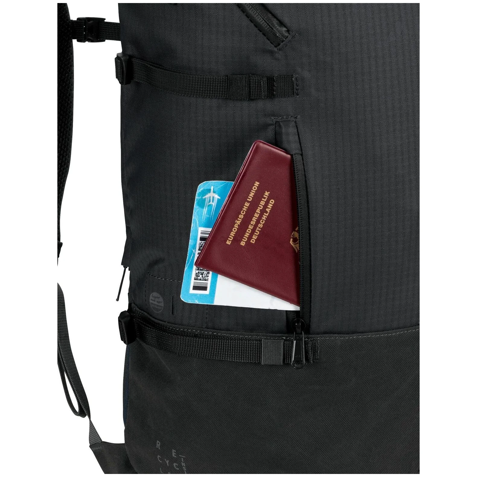 Gli spallacci ergonomici ErgoShape, la cintura lombare e lo schienale ventilato Vent-Comfort assicurano comfort anche a pieno carico. Il materiale Eco Finish respinge l'acqua e lo sporco senza PFC ed è realizzato in PET riciclato e poliammide, riducendo l'impronta ecologica.