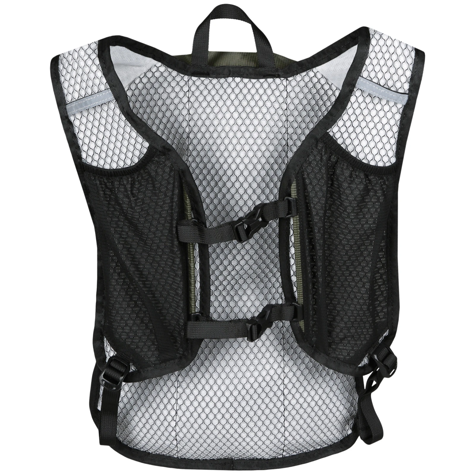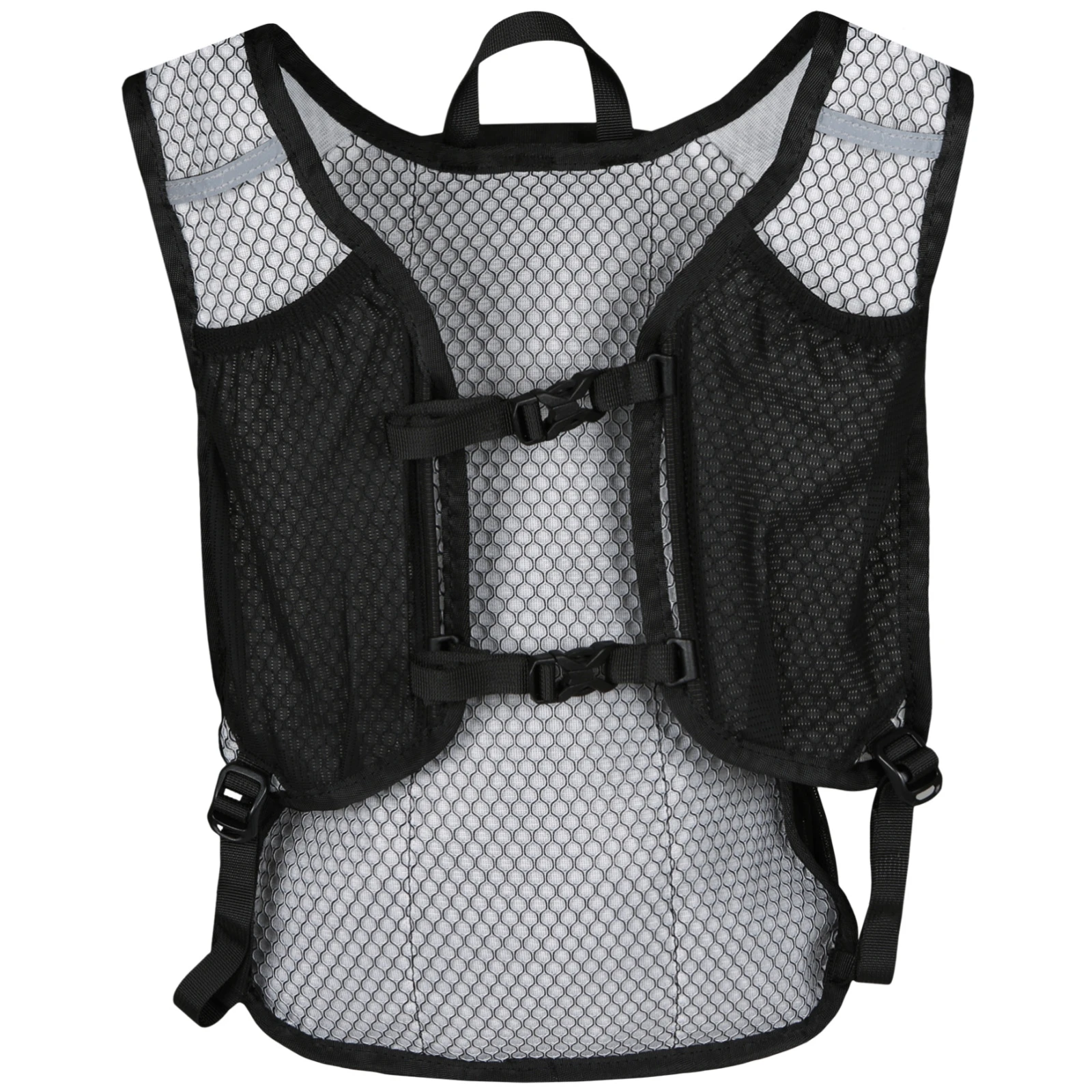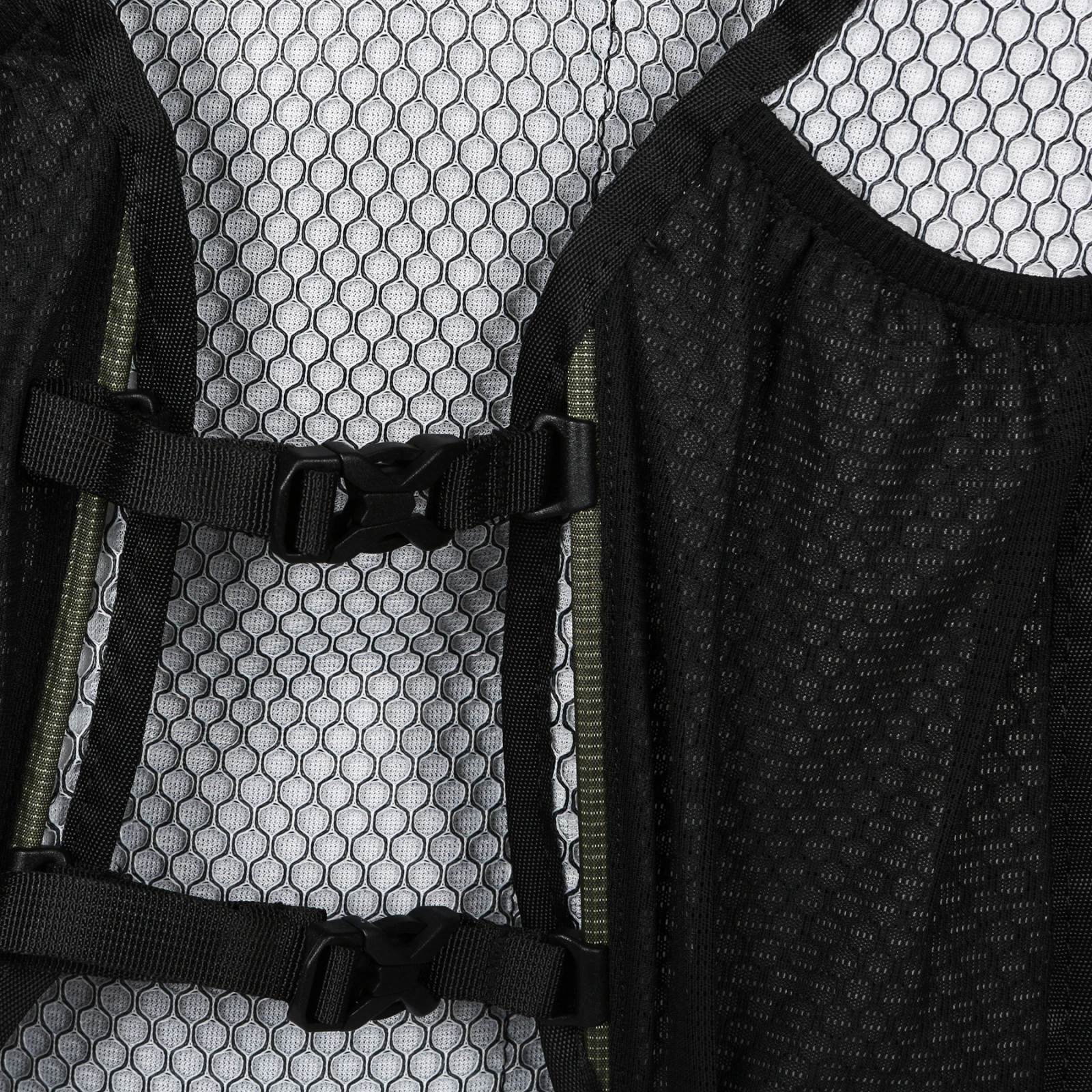 Le spalline e il pannello posteriore sono realizzati in materiale 3D Mesh Vent, che assicura un'ottima ventilazione e contribuisce al comfort generale durante il movimento. L'equipaggiamento include anche la preparazione per l'idropack, che facilita il reintegro dei liquidi durante l'attività. Sugli spallacci sono presenti pratiche tasche adatte per gel energetici, borracce morbide o altri piccoli oggetti. La stabilità durante il trasporto è supportata dalla cinghia pettorale, che aiuta a mantenere lo zaino saldamente in posizione.