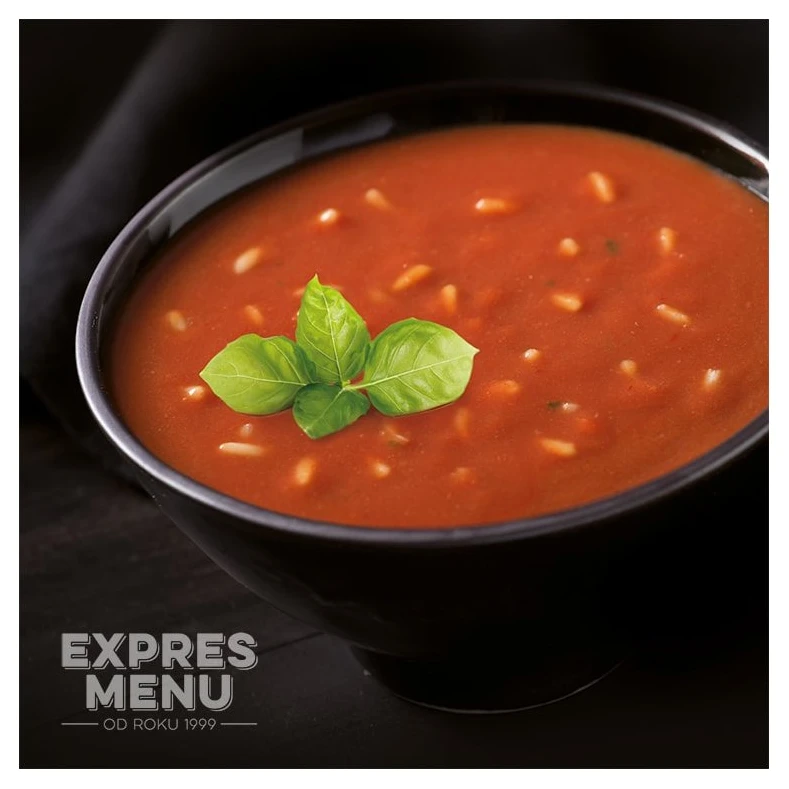 acqua, pomodori a fette (pomodori (60 %), succo di pomodoro, sale, correttore di acidità: acido citrico), passata di pomodoro (9 %) (acqua, passata di pomodoro, sale), riso (11 %), olio d'oliva, cipolla, farina di riso, farina di mais, zucchero, sale grosso, basilico, chiodi di garofano, pepe.